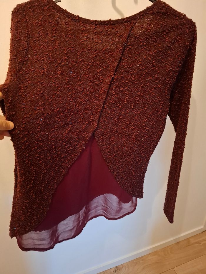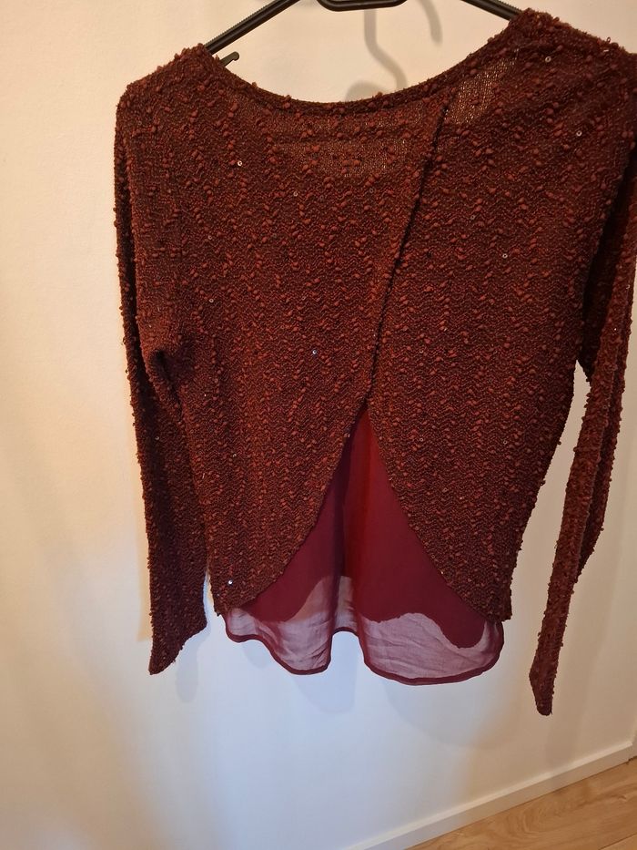 Pull avec ouverture dans le dos avec un voile bordeaux tres joli avec dut lf pull des strases distrait