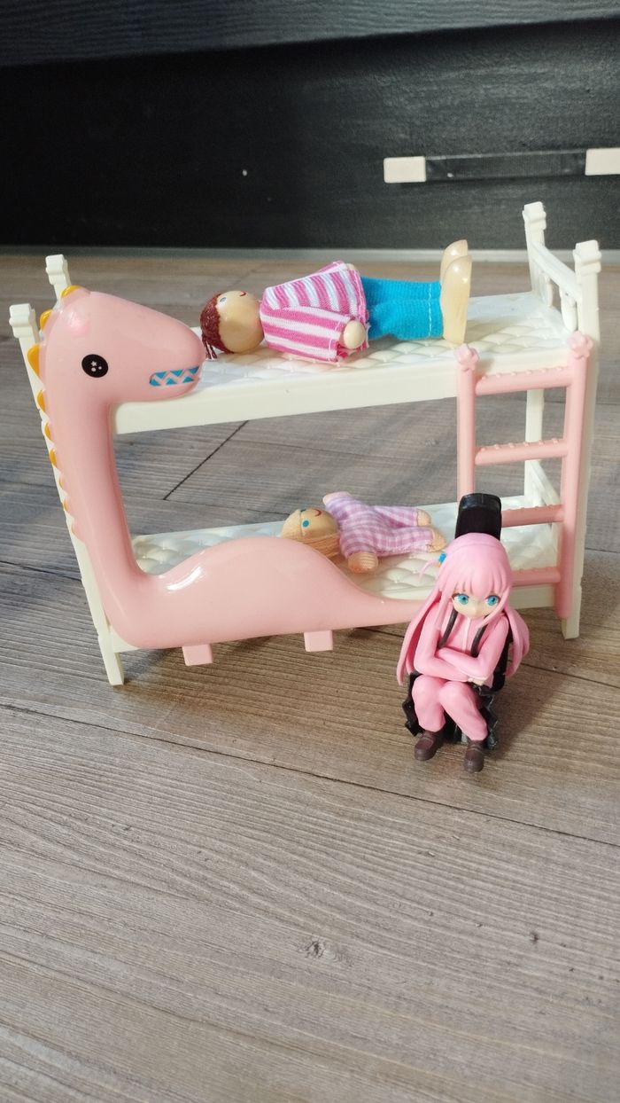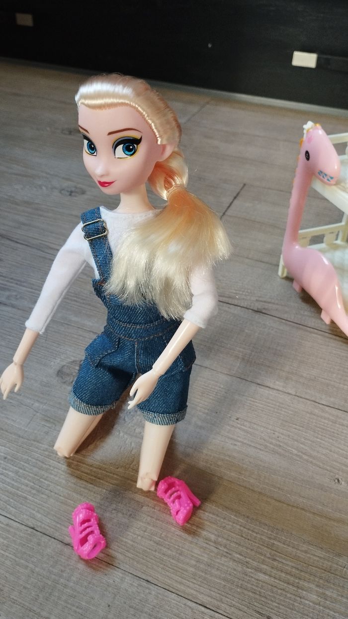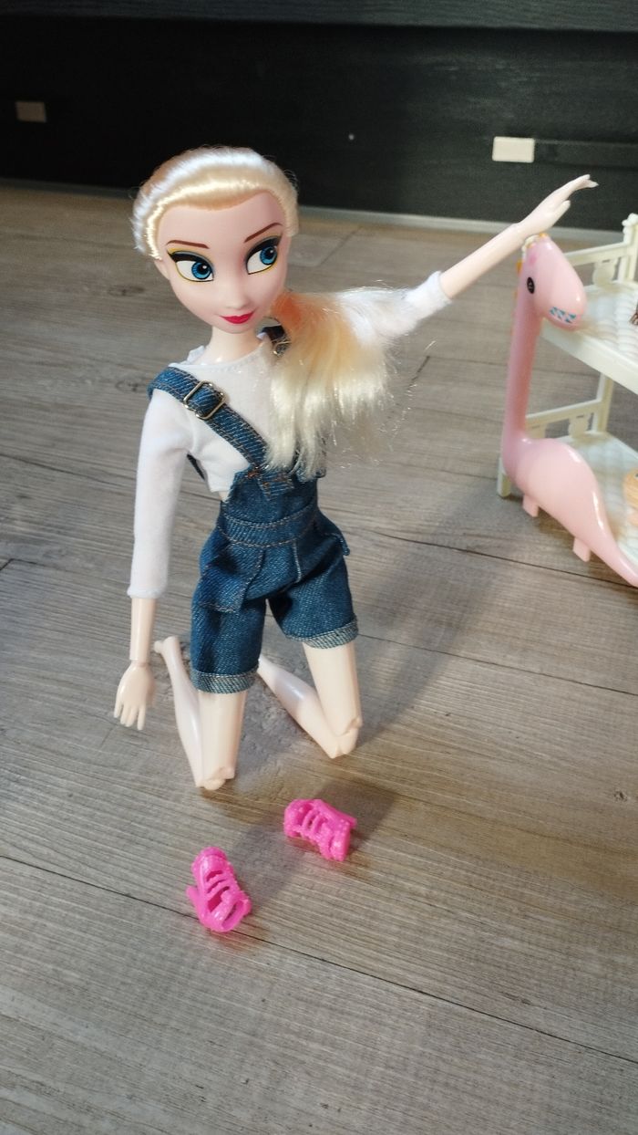 Vends poupée mannequin la Reine des Neiges entièrement articulée un lit double + 2 petits personnages 1 figurine "K-pop" un fauteuil suspendu une chaise avec un personnage qui en vogue , un lubulu