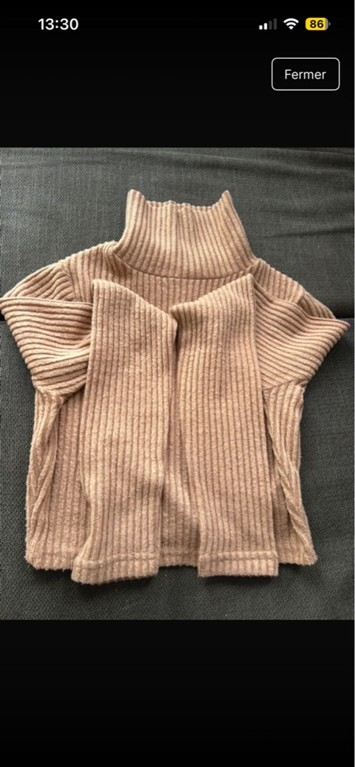 Pull manche longue croc top, couleur marron et beige, taille 34/XS, chaud à col roulé Envoie rapide et efficace 📦🌸