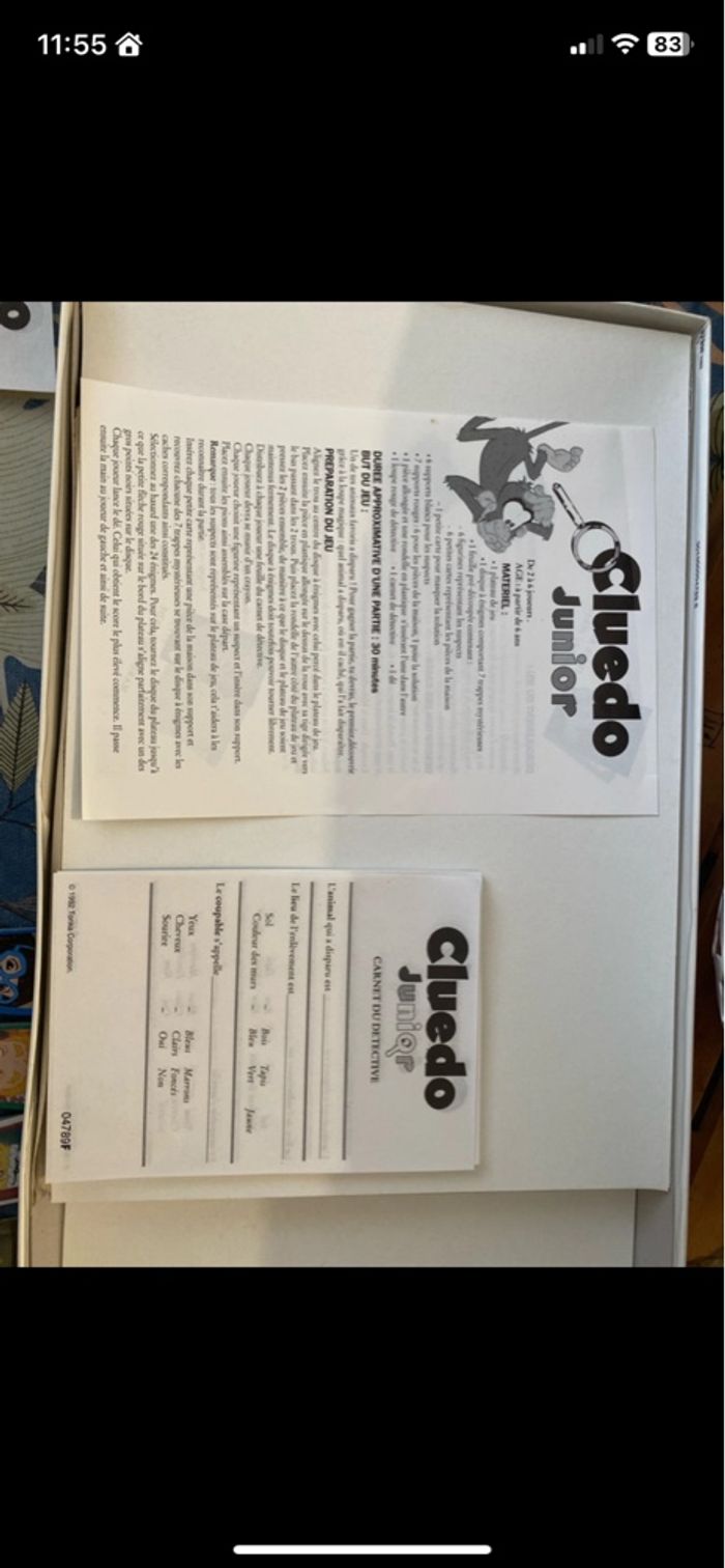 Mais qui a enlevé Gribouille ? Jeu ancien (la boîte à les traces de vieillesse) Hormis la boîte, le jeu est complet et en très bon état. (quelques imperfections voir photos) À partir de 6 ans