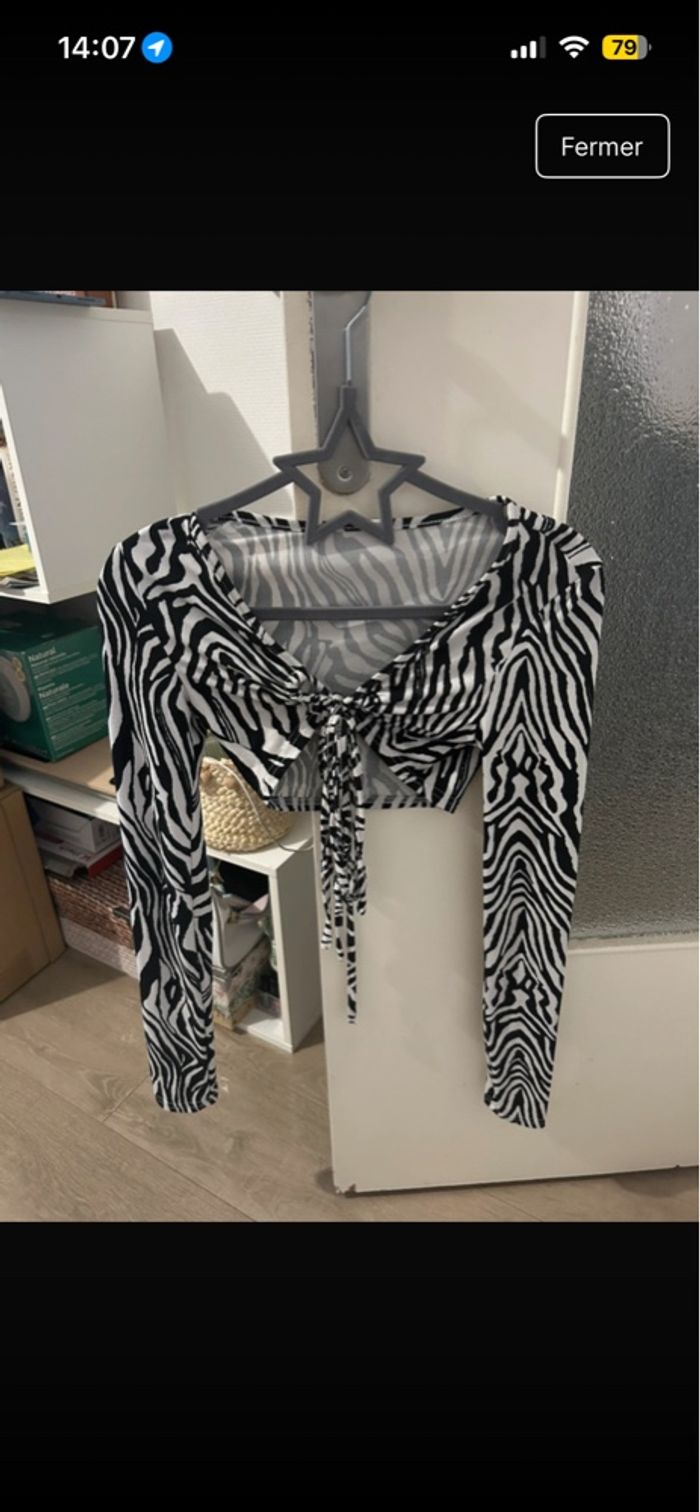 Haut avec motif zèbre manche longue, taille XS, bon état, Jamais portée Envoie rapide et efficace 🌸📦