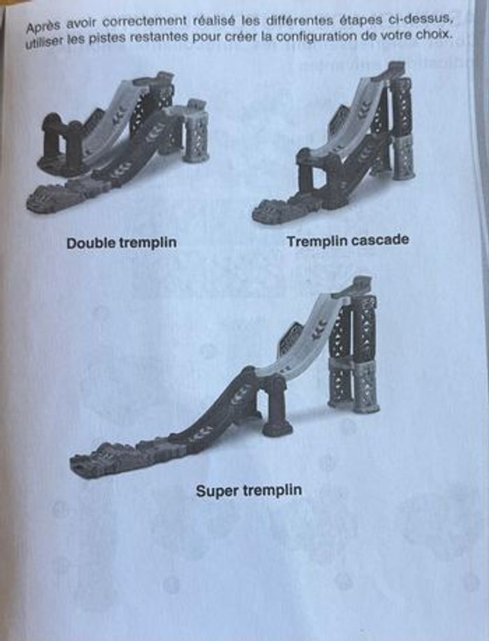 Le Tremplin Cascades de l'extrême est un super tremplin pour s'amuser avec Lucas roi du championnat, le Tut Tut Bolides inclus ! L'enfant lève le lanceur pour faire partir Lucas et le voir dévaler la piste ! Le tremplin peut être construit en 3 configurations différentes : Double tremplin, Super tremplin ou Tremplin cascade pour encore plus de sensations fortes. 1 Tut Tut Bolides inclus : Lucas roi du championnat Plus de 50 phrases, chansons, mélodies et sons inclus 2 zones magiques incluses Compatible avec les univers Tut Tut Bolides et Animo Arrêt automatique 2 zones Magiques incluses font réagir les Tut Tut Bolides par des phrases, des sons rigolos et des mélodies !