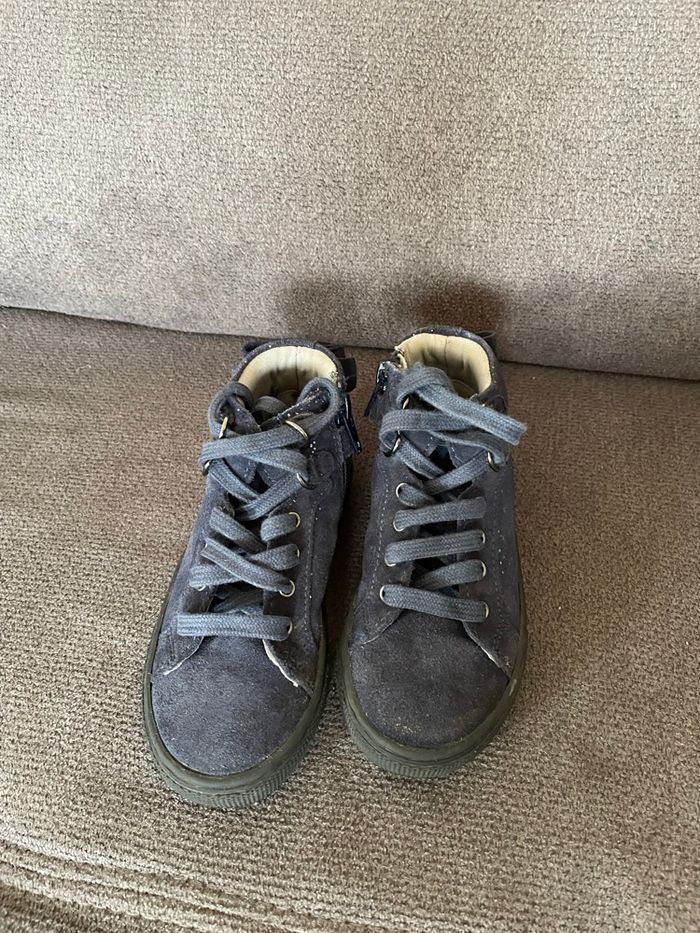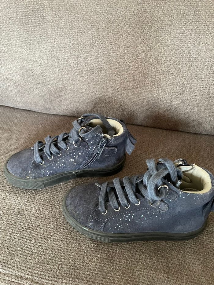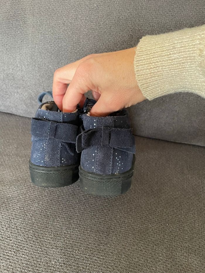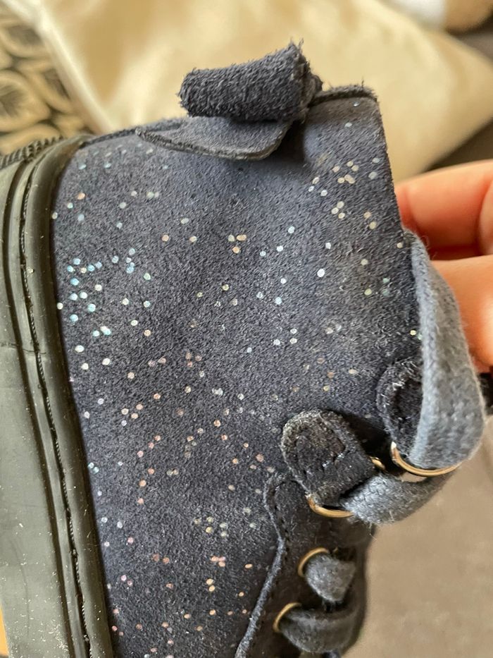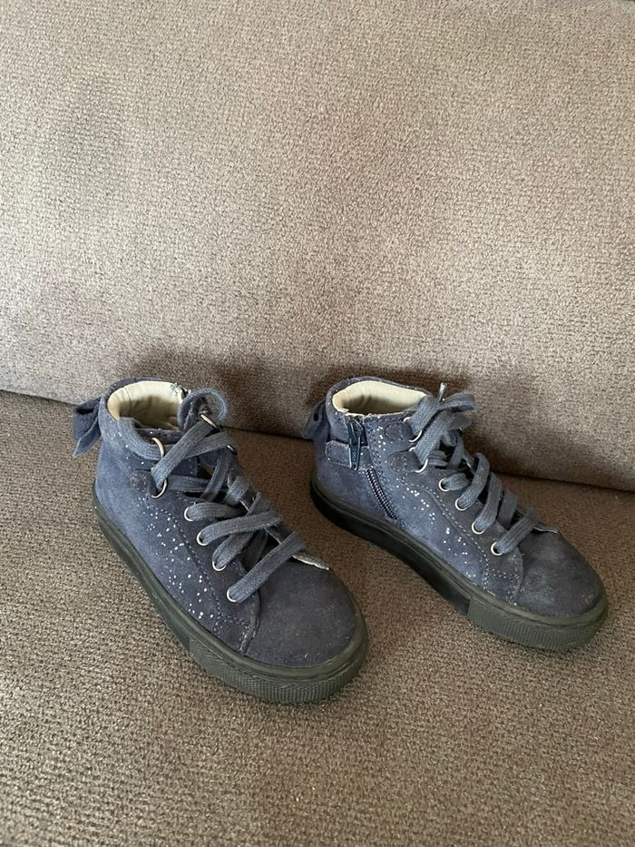 Vertbaudet Baskets hautes Bleu pailletée Semelles encore en très bon état Petit noeud a l’arrière Lacets et fermeture éclair sur le côté