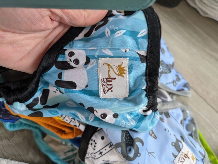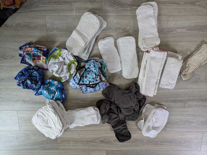 Bonjour je vends 13 couches lavables doubles goussets avec des inserts de différentes marques. Couches qui vous accompagneront de 4kg environ à la propreté! Mon petit loulou est propre! Belle expérience grâce à ses couches! Couches en très bon état 33 Inserts de différentes matières( coton, bambou...). Tous décrassés. D'autres sont donnés avec le lot. 15 Voiles lavables aussi en très bon état N'hésitez pas pour plus de photos ou questions.