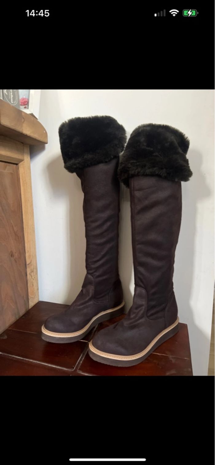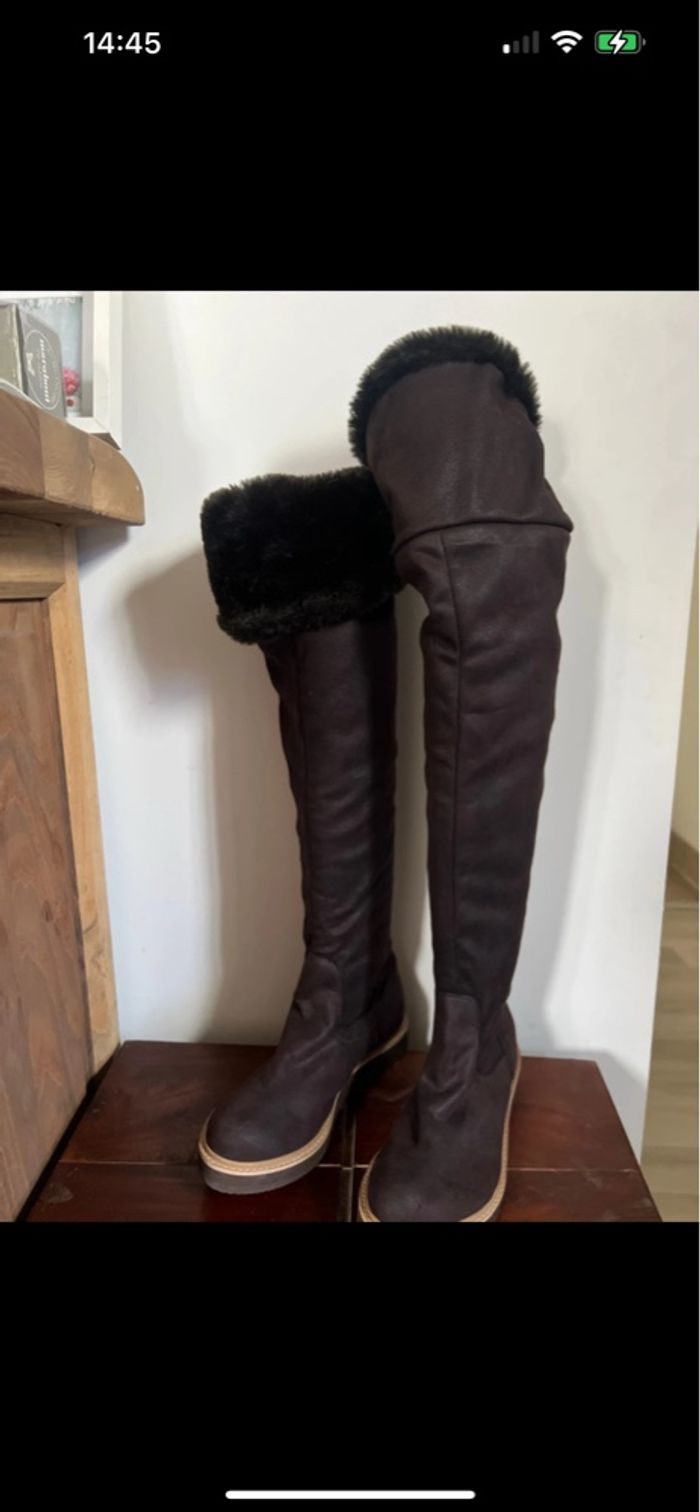 Livraison sous 24 en shop to shop (relais à 1km de chez moi) Portées une fois mais trop petites pour moi, elles sont comme neuves voir photo Hyper agréable avec l’élastique derrière qui permet un bon maintien de la botte sur le mollet Fourrure dépliée, elles montent sur la cuisse