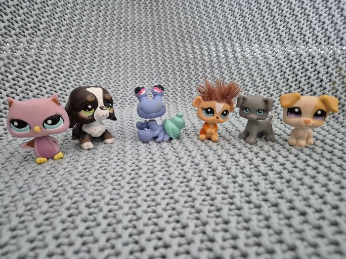 Lot de Littlest Petshop dont 1 walkable: - Hibou 1508 - Saint Bernard 2121 - > marche tout seul - Bernard l'hermite 752 - Cochon d'inde 2489 - (chien Polly Pocket) - Jack Russel 1110 #mimidacenfant #mimidacjouets