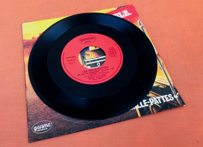 Vinyle 45 tours Les Mille-Pattes En route ensemble (1984) Garima Records ZB 61485 A) En Route Ensemble (chanté) 2:59 B) En Route Ensemble (Orchestral) 2:50