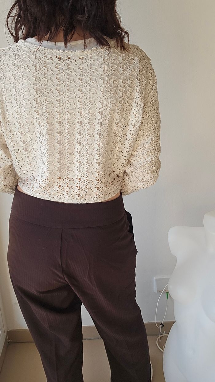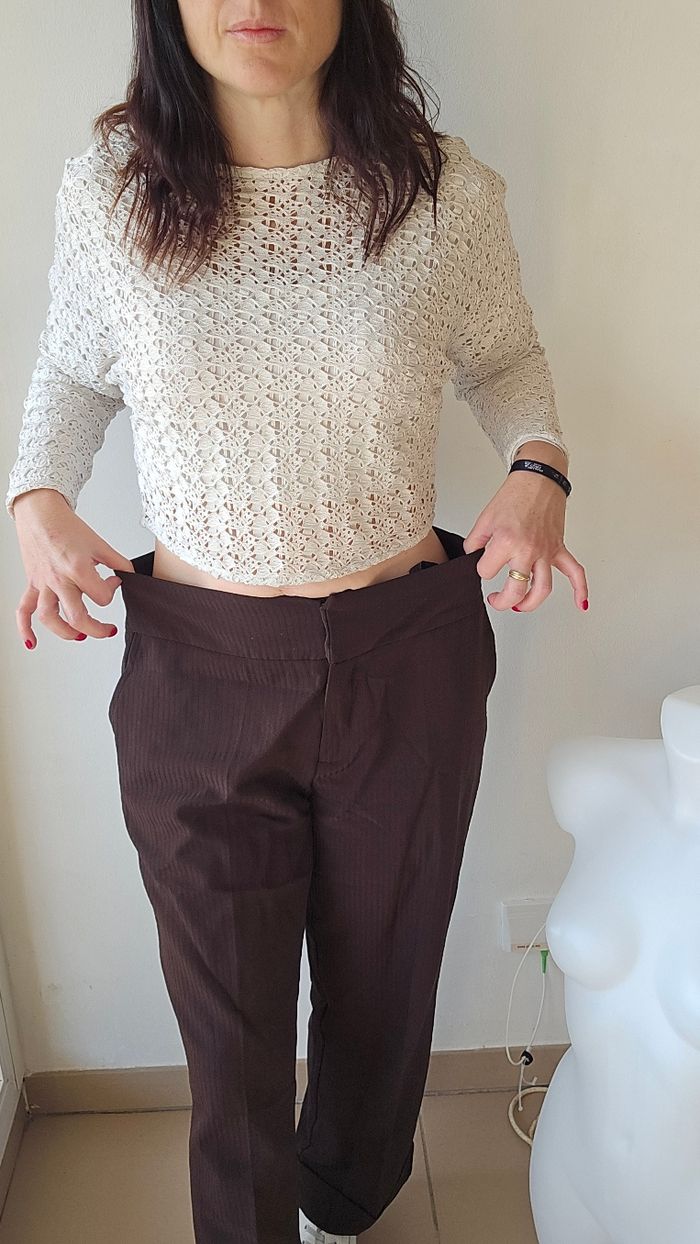 Pantalon droit Marron a rayures Poches Fermeture a glissière et boutons #jacquelineriu #pantalon #pantalondroit #pantalonjacquelineriu #ameliedressing13taillexl