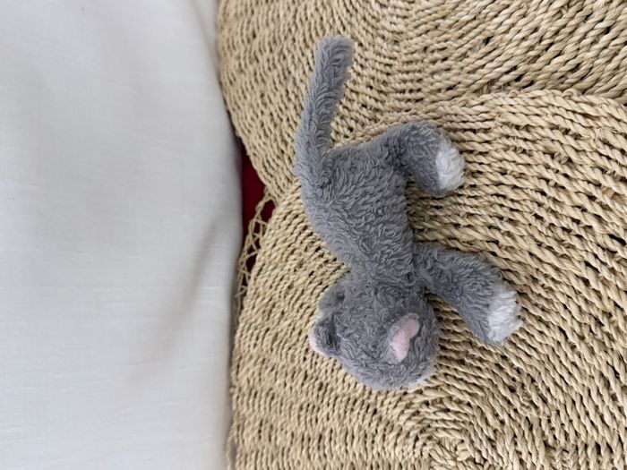 Peluche Chat Vintage Gris et Blanc Coutures Nez Rose Mini Beanie Chat - photo numéro 5