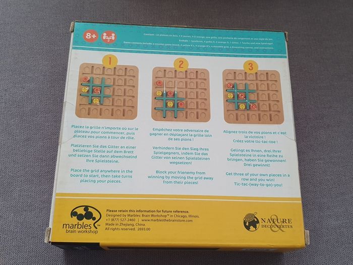 Jeu acheté chez Nature & Découvertes. Jeu type morpion, se joue à 2. Neuf, jamais ouvert.