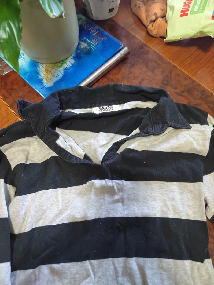 Polo manches longues Rayé noir et blanc Xs