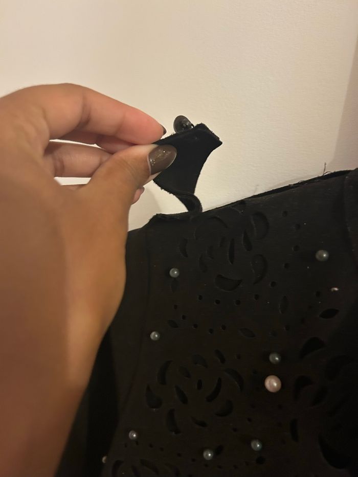 Manteau noir, avec des perles, abîmer aux niveau des épaules mais peux se recoudre Taille s Envoie rapide et efficace 📦🌸
