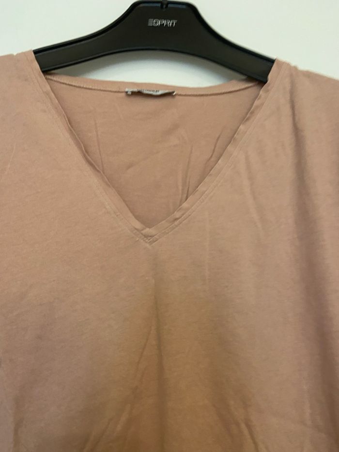 T-shirt long col V rose S - photo numéro 1
