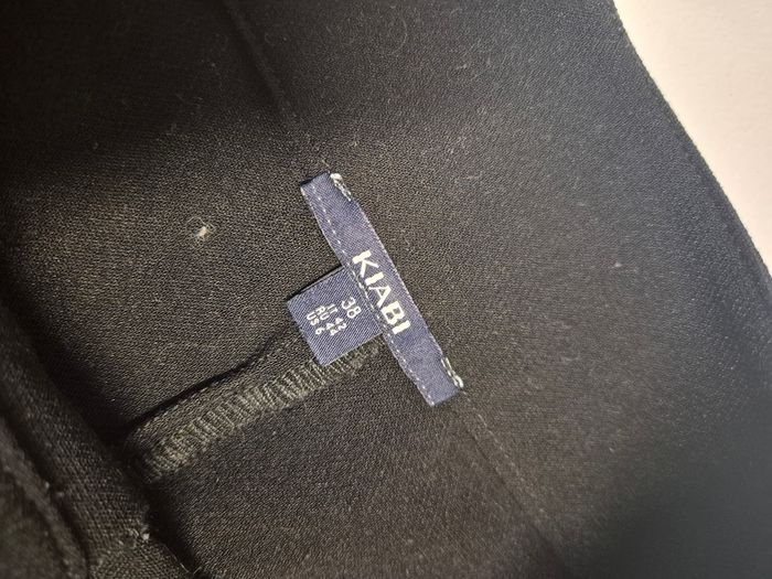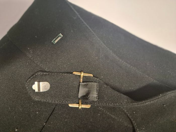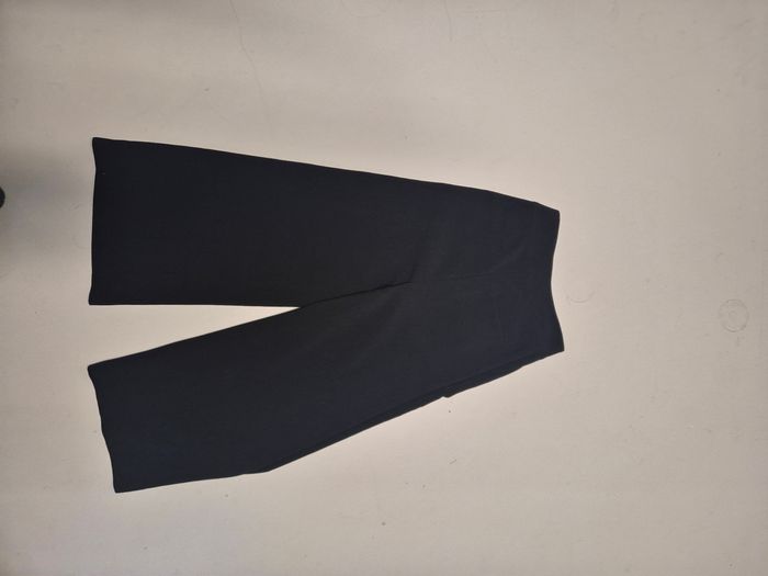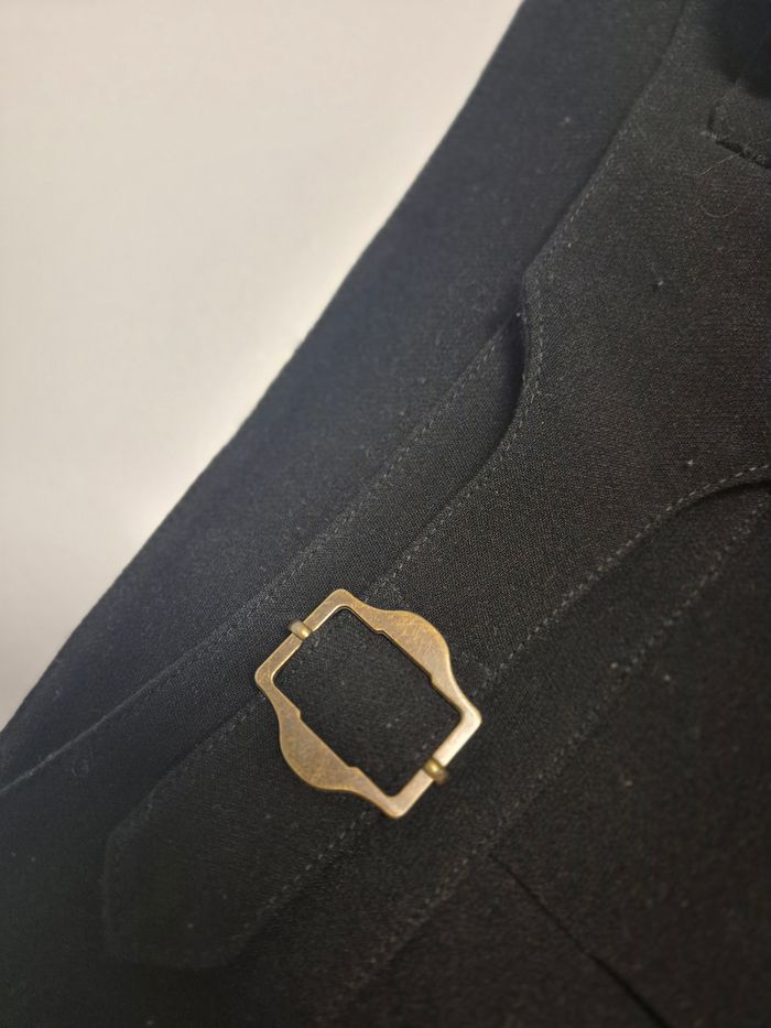 Pantalon large noir. Ouverture par agrafe et zip. Pattes avec boucle dorée devant. 2 poches devant