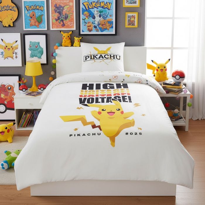 ⚡ Parure de lit Pokémon – 1 personne Transformez la chambre en véritable arène Pokémon avec cette parure de lit pleine d’énergie ! Format pratique : adaptée pour un lit 1 personne, idéale pour les enfants et les fans de Pokémon. Design coloré et dynamique : Pikachu et ses amis apportent une touche fun et magique à la déco. Confort garanti : douce et agréable pour des nuits pleines de rêves d’aventure. Facile d’entretien : résistante et simple à laver, pour accompagner les batailles du quotidien. 🌙 Avec cette parure, chaque nuit devient une nouvelle mission Pokémon… Attrapez-les tous, même dans vos rêves !