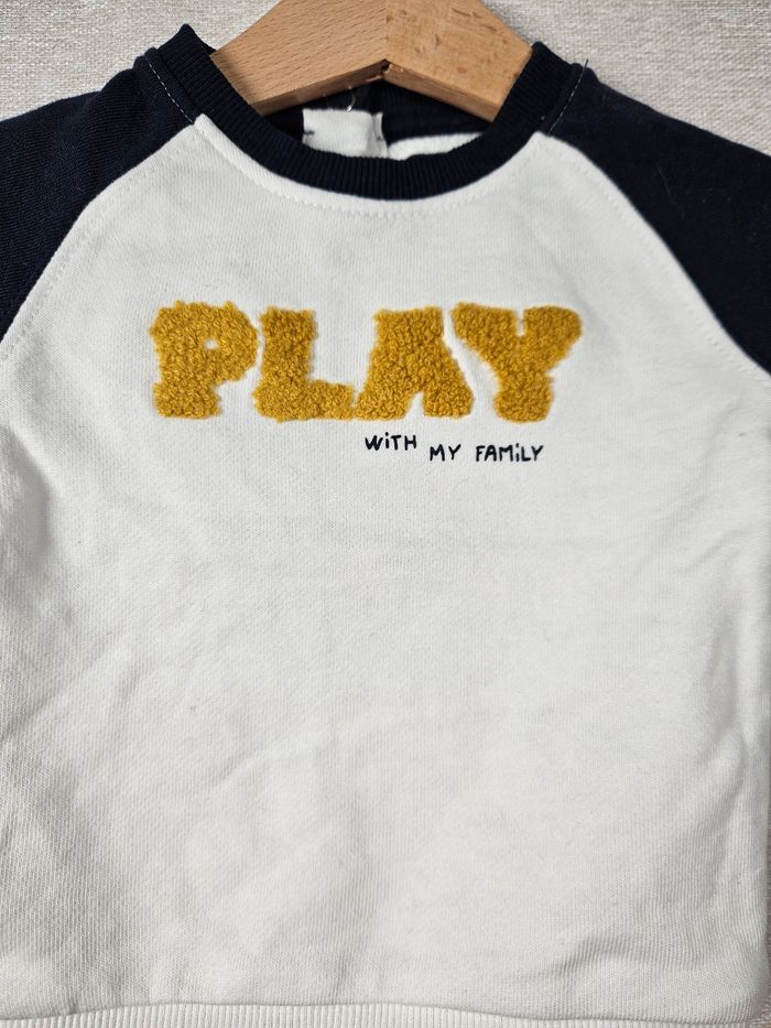 Hello ! 👋 Je te propose cette pièce de la marque Kiabi, une super trouvaille pour le dressing de bébé 👶 Un sweat bicolore au style baseball ultra dynamique avec son inscription "PLAY" en relief pour un petit look sport et craquant. Informations utiles: * 👕 Article : Sweat manches longues bicolore * 📏 Taille : 3 mois (56-62 cm) * 🌈 Couleur : Blanc et bleu marine avec détails moutarde * 🧵 Matière : 100% coton * ✨ État : ⭐⭐⭐⭐ Les petits + : 🏡 Logement non fumeur et sans animaux. 📦 Envoi rapide et soigné. N'hésite pas si tu as la moindre question ou si tu veux d'autres photos ! Je suis là. 😉 #kiabi #3mois #bébé #sweat #play #coton #modebébé #vêtementbébé #sportswear #trèsbonétat