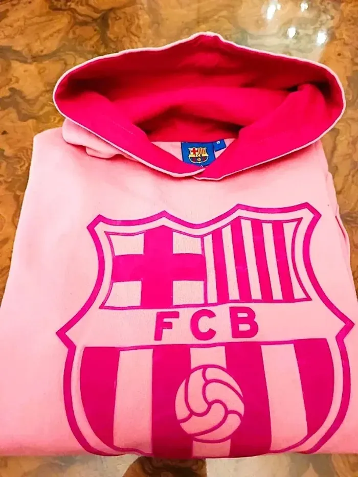 Sweat à capuche Rose 100% Coton (prix neuf 59 euros) Etat neuf sans étiquette Marque FC Barcelone officiel taille 10 ans