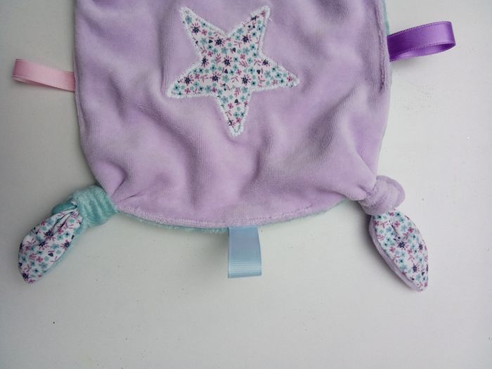 Doudou mouchoir fille  unique, motif étoile, mauve, vert eau, bleu ciel - photo numéro 2