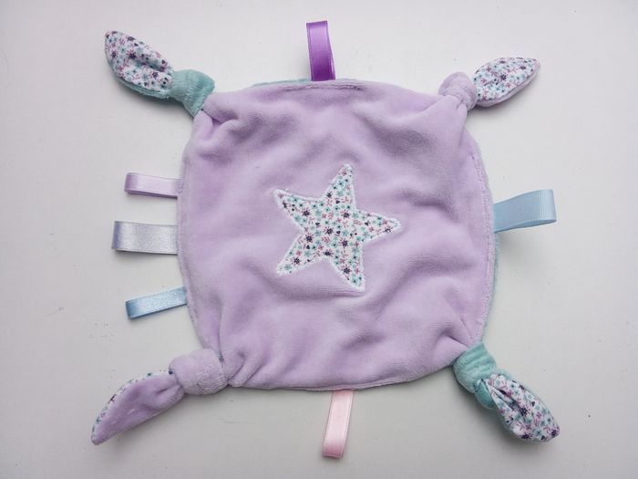 Doudou mouchoir fille  unique, motif étoile, mauve, vert eau, bleu ciel - photo numéro 1
