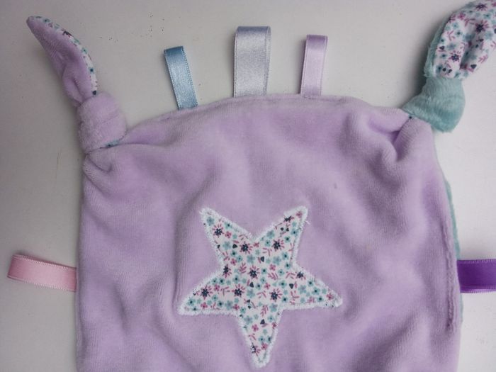 Doudou mouchoir fille  unique, motif étoile, mauve, vert eau, bleu ciel - photo numéro 3