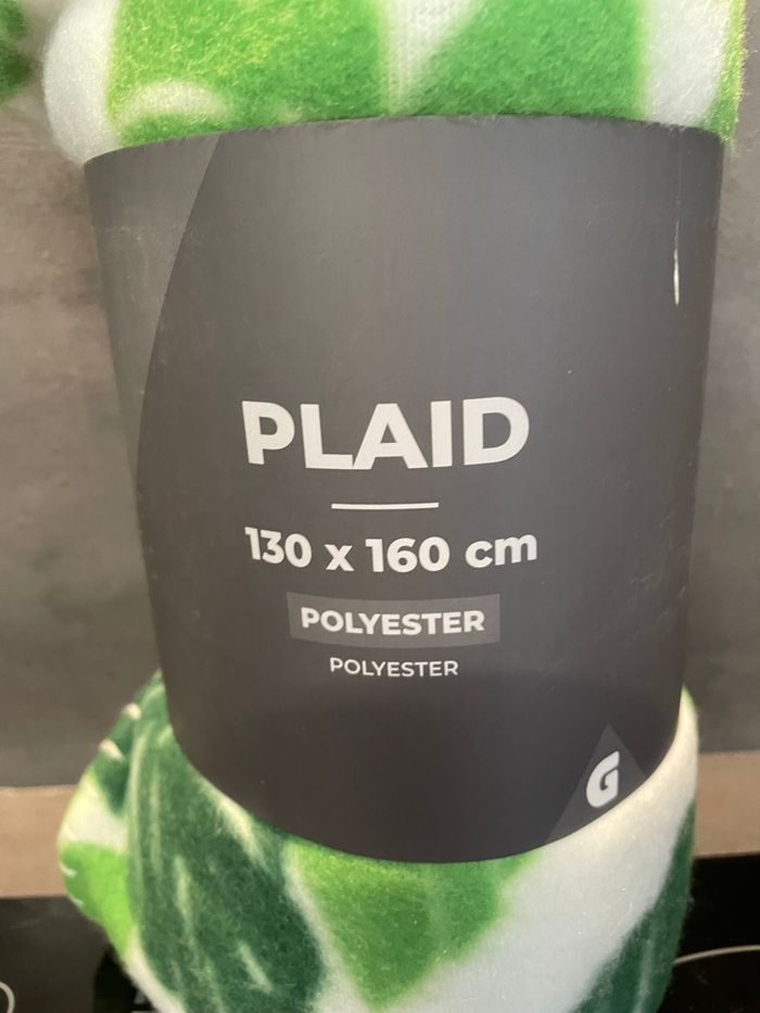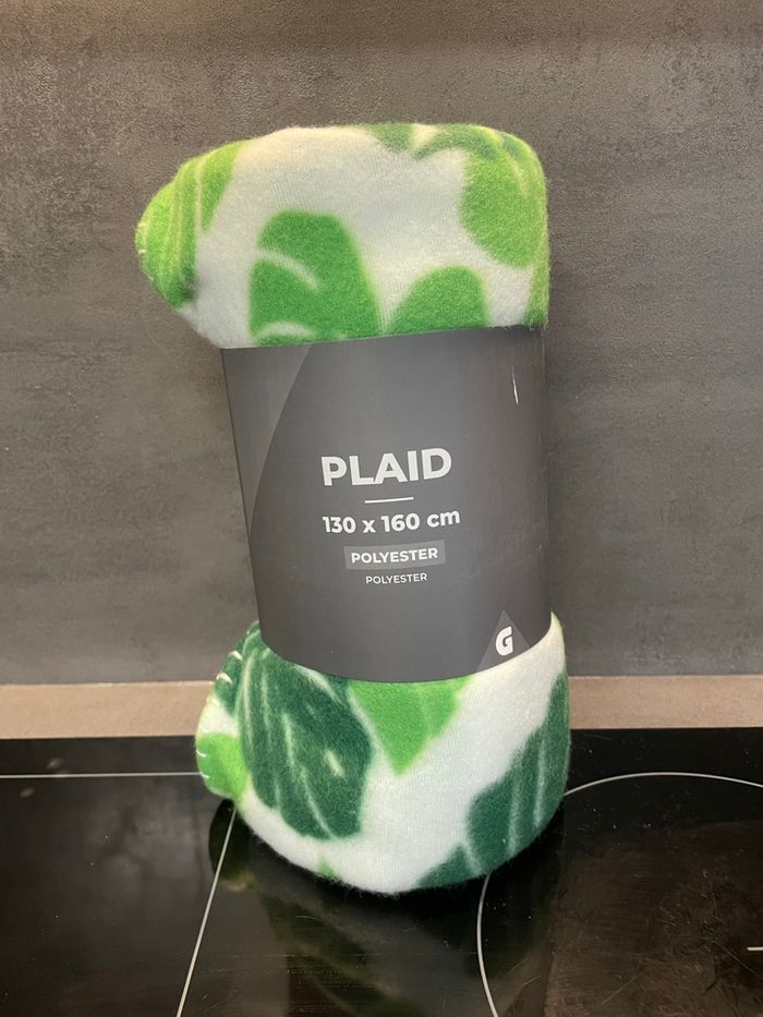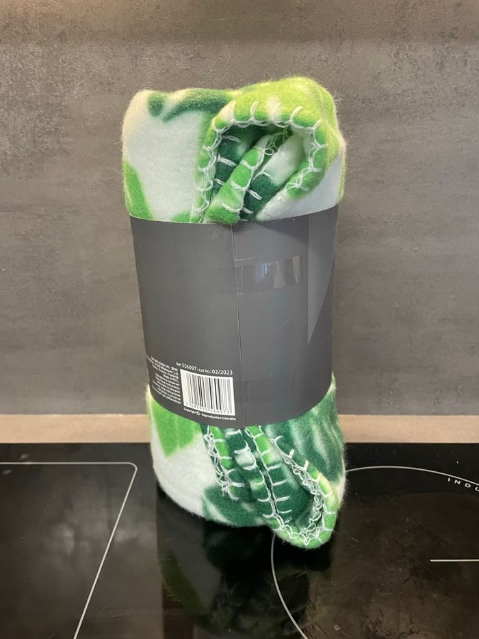 Plaid neuf jamais utilisé PLAID POLAIRE À MOTIF FEUILLAGE VERT BLANC Ultra déco et tout doux, ce superbe plaid polaire à imprimé feuillage vert sur fond blanc apportera une belle touche naturelle à votre intérieur. Idéal pour tous vos moments de détente sur le canapé ou le lit! Dimensions: L 160 x l 130 cm Matière: 100% Polyester Coloris: vert, blanc