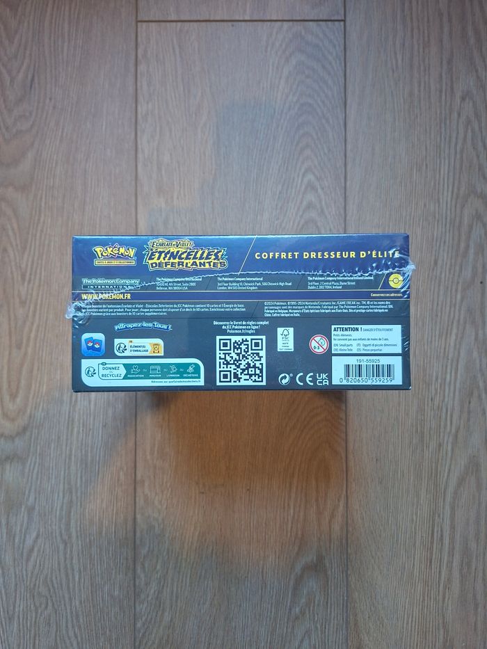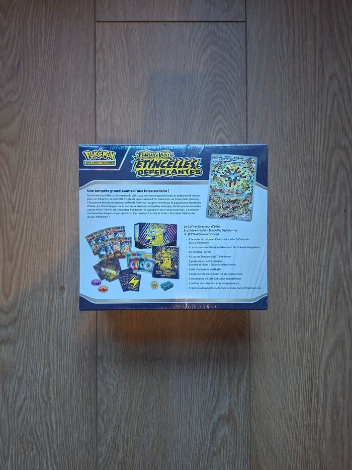 ETB Pokémon Ev8 Étincelles Déferlantes 🗒 État : Scellage propre, léger défaut visible sur la seconde photo. 📌 Remise en main propre possible dans le 78, 92 et 75. 📦 Envoie dans les 24h - 48h. L'article est proprement emballé afin d'éviter les mésaventures lors du transport !