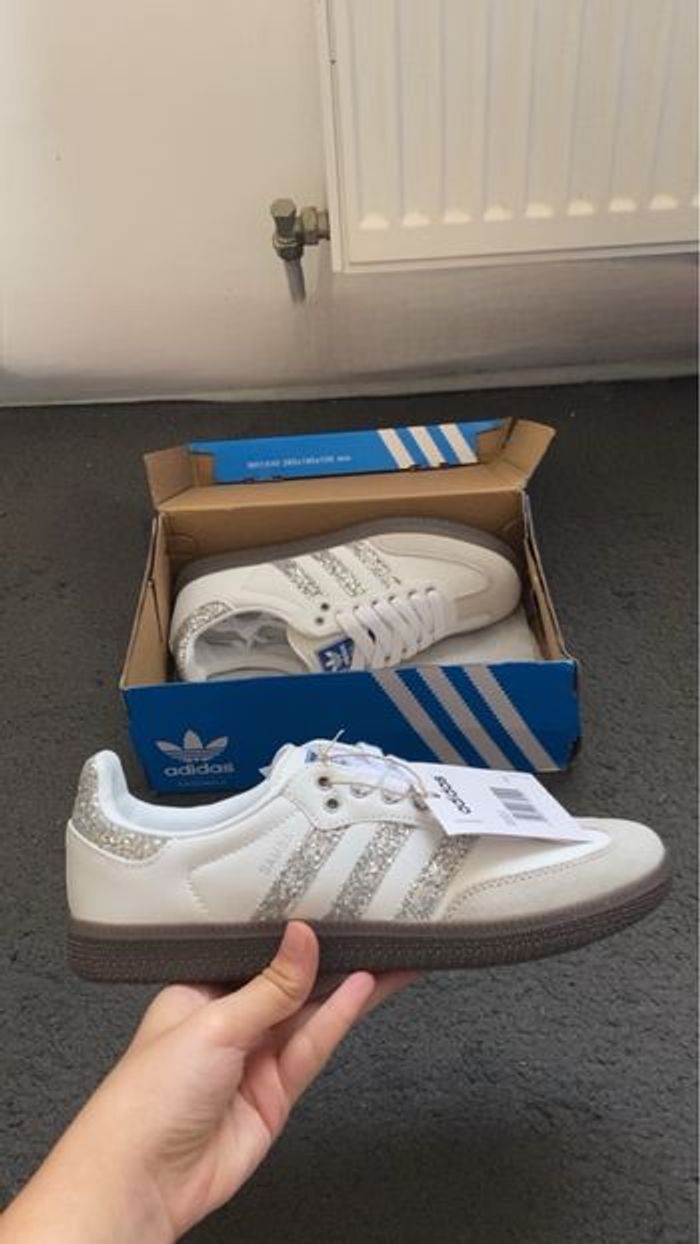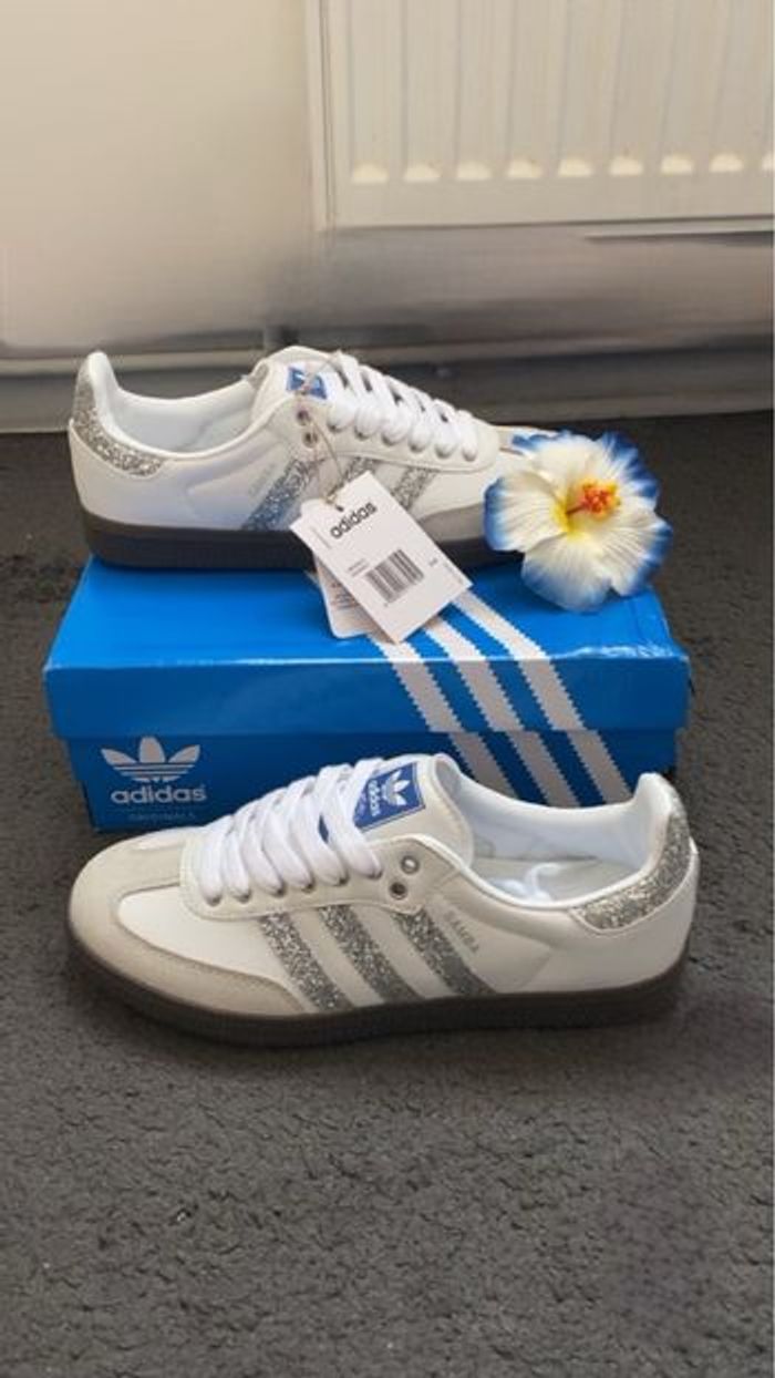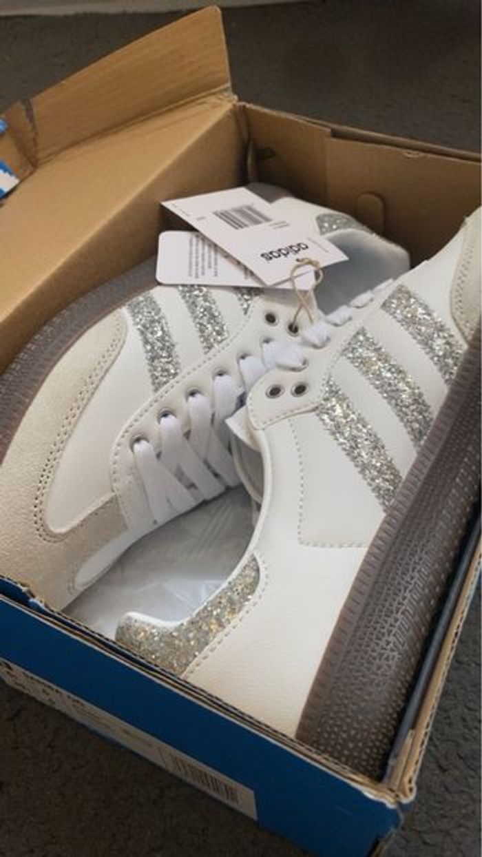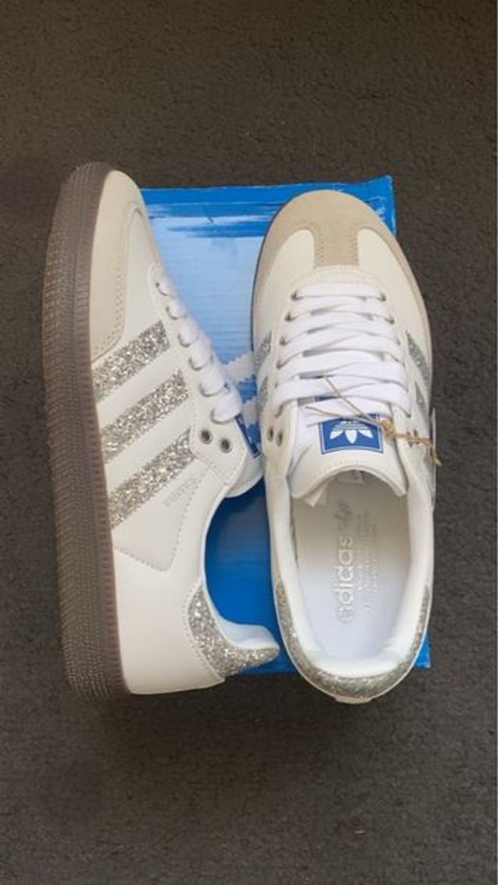 • Pointure: 39 • Couleur: blanche (motif pailleté) • Etat: Neuf avec étiquette • Inclus: boîte d'origine + papier de protection Envoi en 24h et soigne.