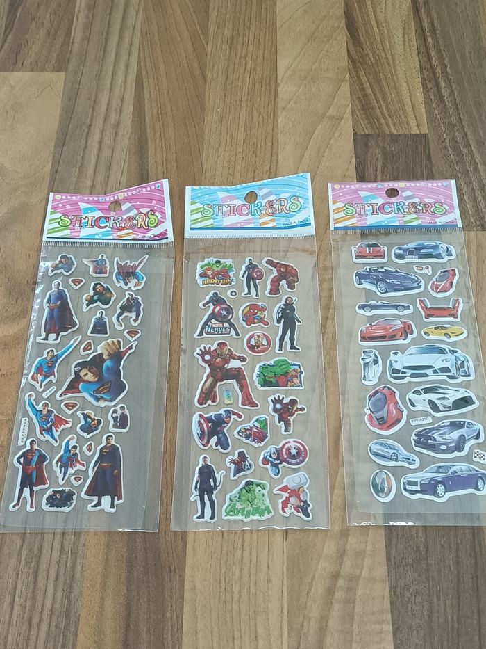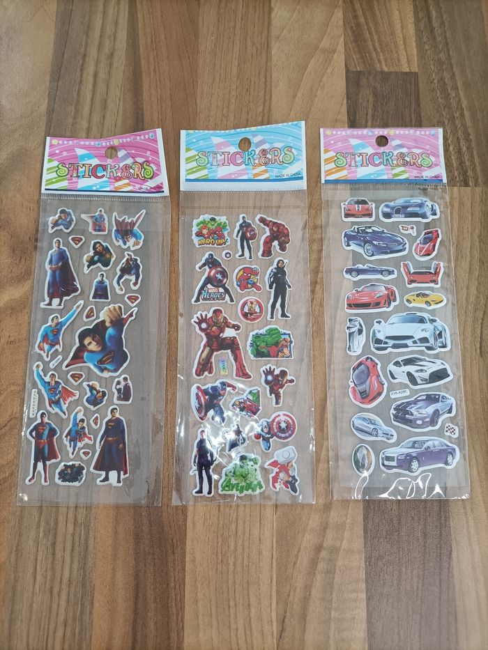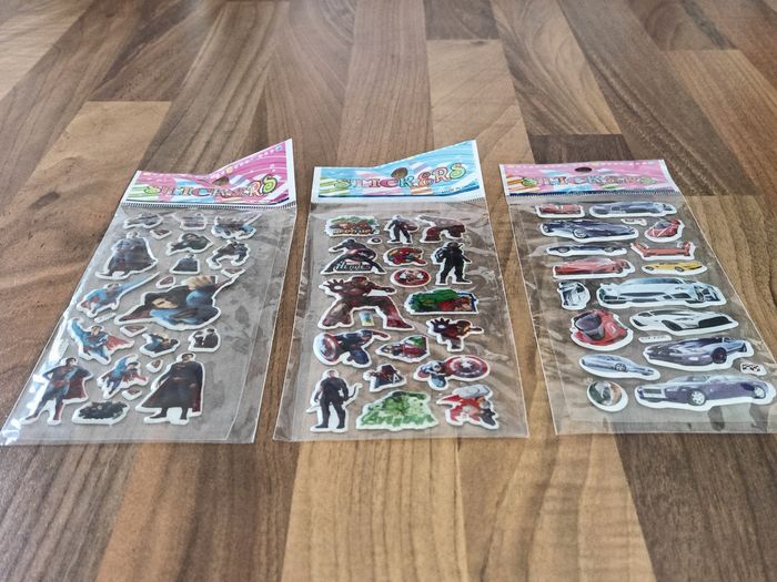 Lots 3 plaquettes de stickers neufs Marvel, Superman, jolies voitures  - photo numéro 1