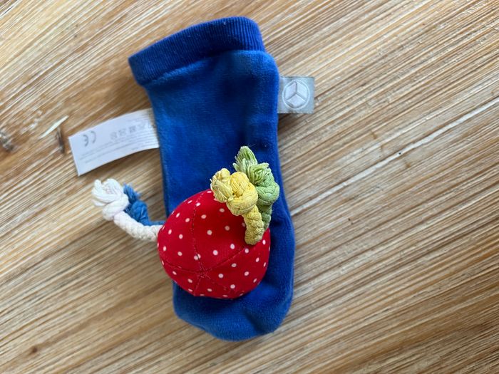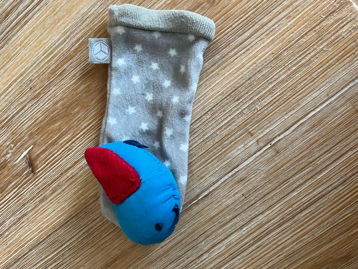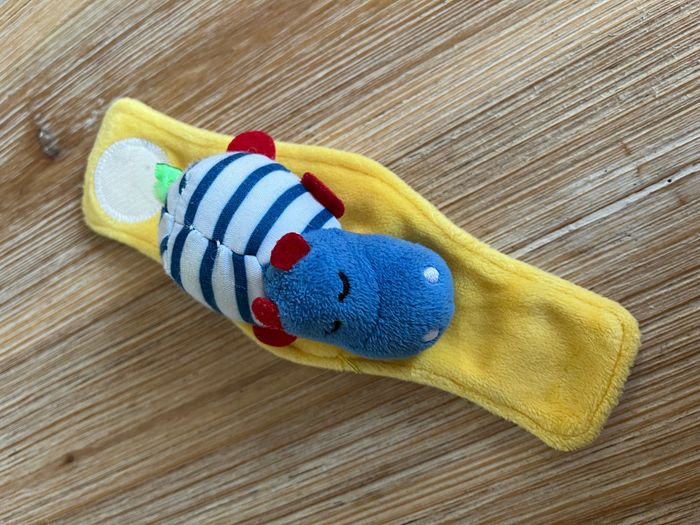 En très bon état. Hochets pour pieds (chaussettes) et pour poignés (bracelets) de couleurs vives et contrastées pour stimuler. 1 activité sensorielle sur chaque élément qui contient une forme ou un animal coloré. En essayant inlassablement de les attraper, bébé les fait bouger et ils émettent un son de pouet, de grelot ou de papier bruissant, ce qui lui permet de prendre peu à peu conscience de son corps et de développer sa sensorialité par la vue, le son et le toucher. Prix neuf 20 €