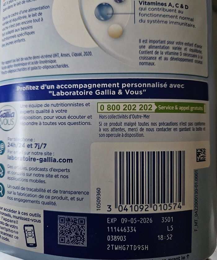 1 boite de lait gallia calisma croissance 3eme âge dès 12 mois neuf expire 09/05/2026