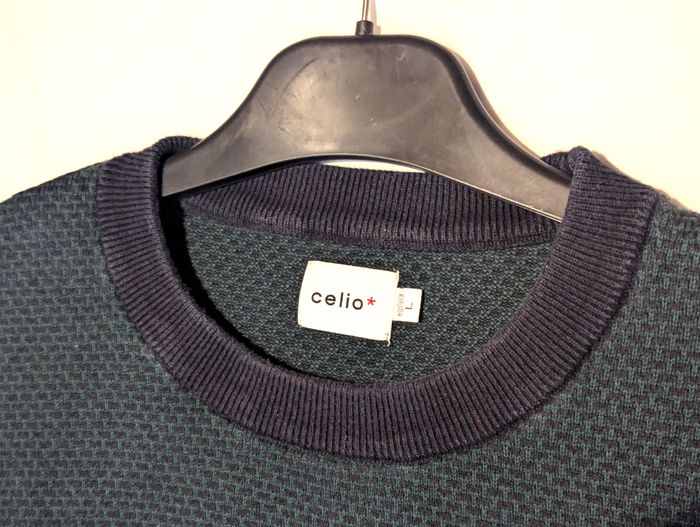 Pull Célio Vert Motif Petits Rectangles Noirs Vêtement Tendance Mode Hommes - photo numéro 9
