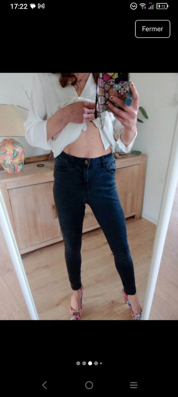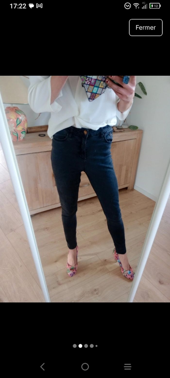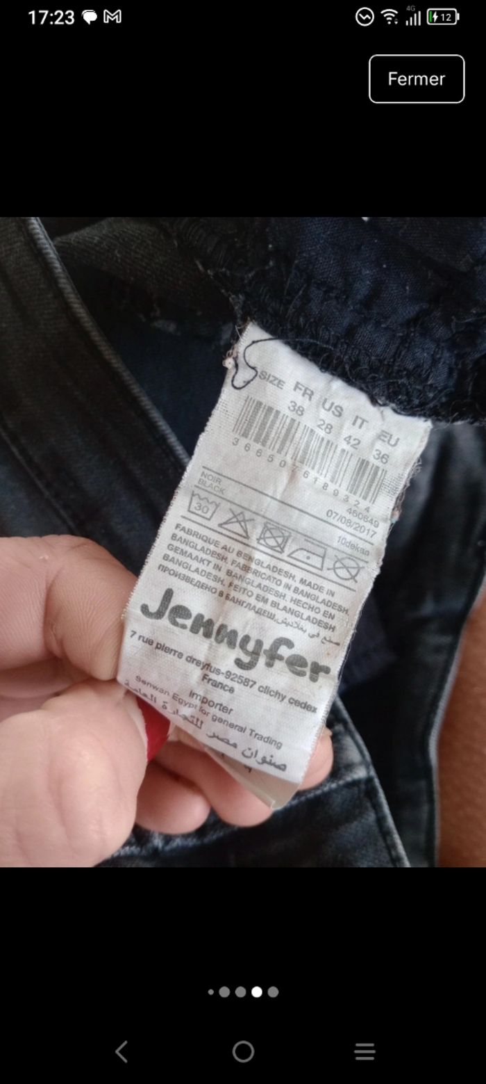 ​Jean skinny de la marque Jennyfer, modèle "BE COOL". Sa coupe est ajustée et flatteuse, parfaite pour un look quotidien décontracté ou plus habillé. ​Coupe : Skinny ​Détails : Fermeture classique avec zip et bouton doré vieilli, 5 poches. ​Matière : Tissu stretch et agréable à porter. ​Composition : 75% Coton, 21% Polyester, 2% Viscose, 2% Élasthanne. ​Dimensions : ​Taille FR 38 standard. #calomomi_femme38 ​#Jennyfer #JeanSkinny #BeCool #JeanNoir #Denim #Taille38 #ModeFemme #StyleBasique #JeanStretch #Fashion