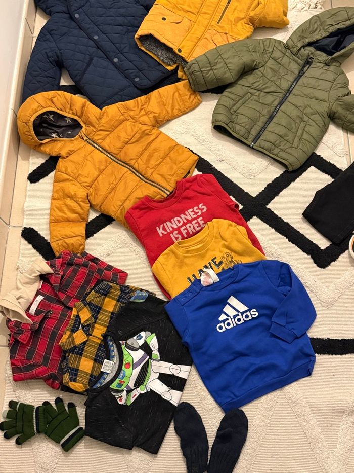 Je vend ce lot de vêtements pour garçon Ça va de 3-5 ans Il est composé de 40 pièces Vestes, veste chemise, gants hiver manteau, doudoune, t-shirt été, shorts et sweats capuche. Aussi chaussures et 3 sac à dos. différente marque : Zara, plaide, adidas, orchestra, H&m …etc Le tout pour 100€. NON NÉGOCIABLE ! Idéale pour revente ou enfants familles nombreuses 😊