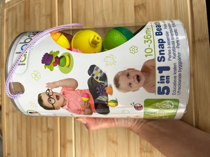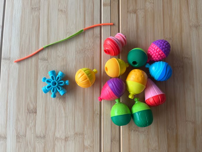 En très bon état, très peu servi. Perles de motricité, éducatives et sensorielles à assembler pour les petits et les plus grands. Contient 11 grosses perles, 1 accessoire et un tuteur de laçage. Des perles évolutives dont chaque fonction correspond à une étape du développement de l’enfant de 10 à 36 mois : Clipser, visser, combiner, construire, lacer ! Prix neuf 15,99 €