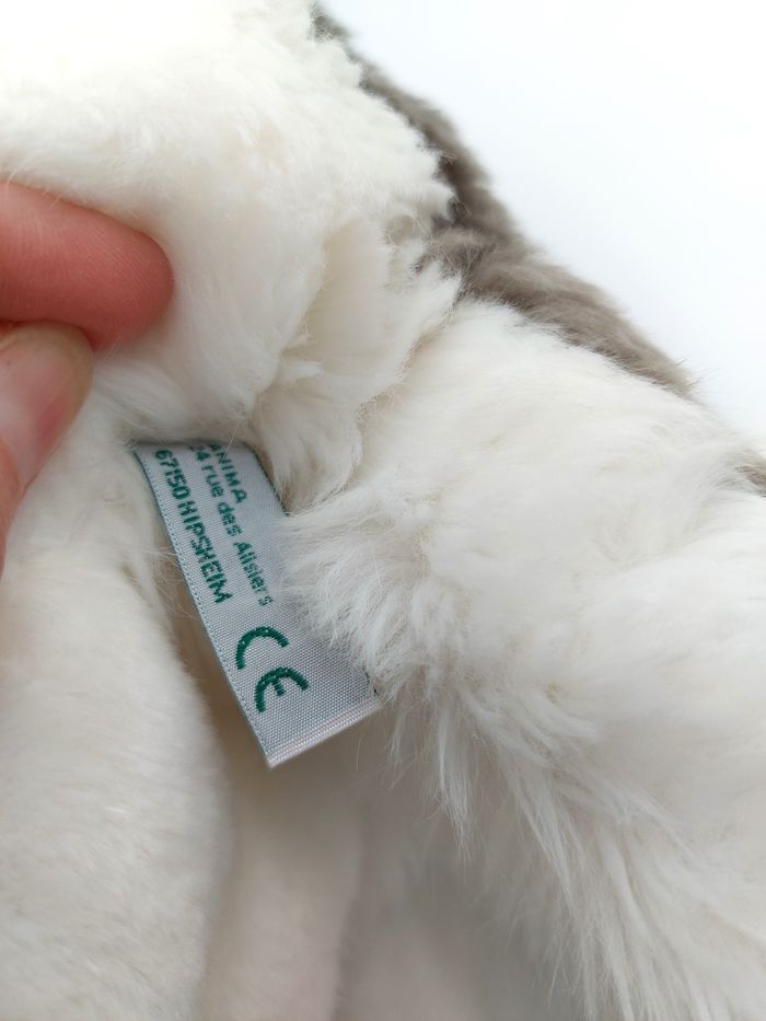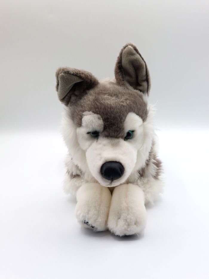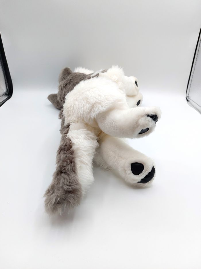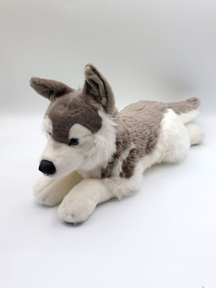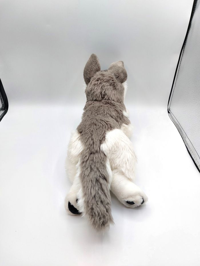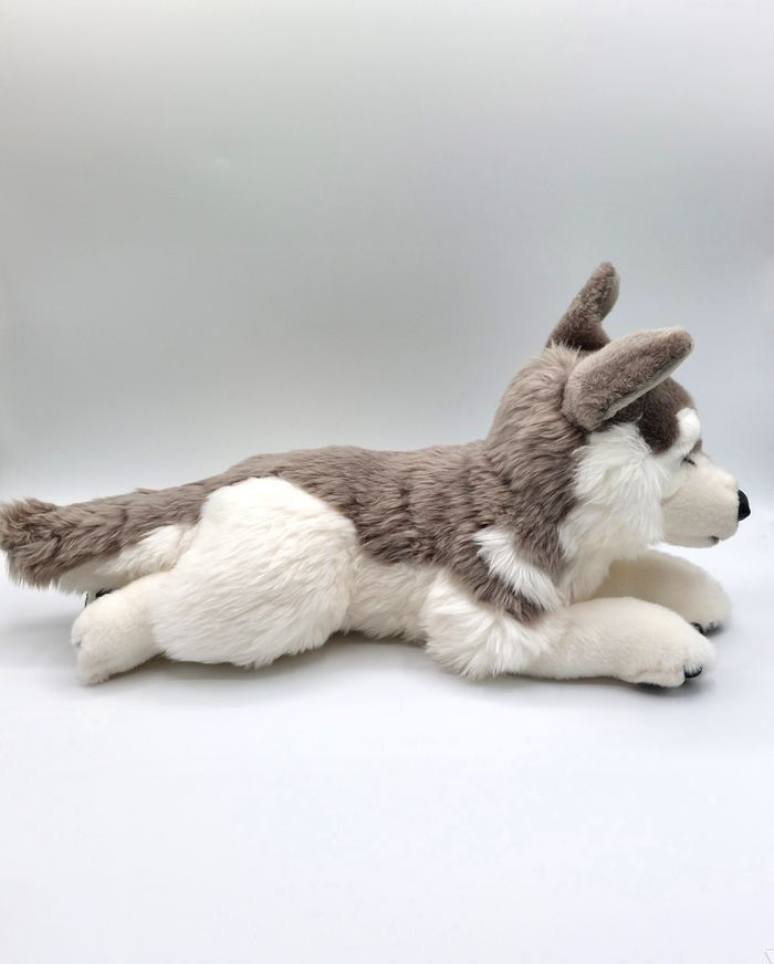 Grande peluche chien Husky gris blanc ANIMA longueur : environ 46 cm Très bon état Envoi rapide Réf A12759 #anima #peluche #chien