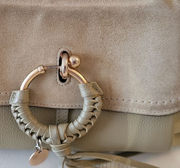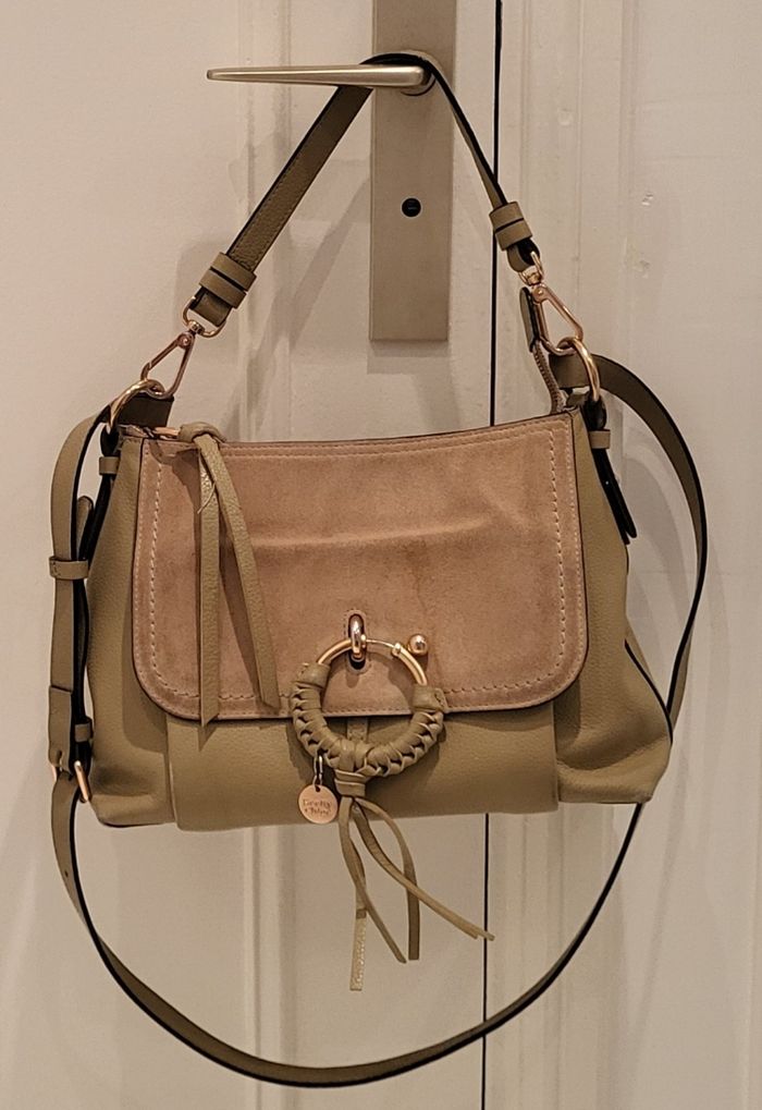🔶See by Chloé- Modéle Joan Hobo- Beige/Crème -Porté Epaule ou Main-100%Cuir en BE🔶 *Designer: See by Chloé *Modèle : Joan Hobo Se porte à la main ou en bandoulière *Etat : BE Tout le cuir du sac est en TBE Le Cuir Velours présente une marque Le doré de l'anneau et du médaillon de la marque est un peu passé Voir photos *Couleur : Beige *Taille : Voir photos et/ou Site Internet Hauteur 20 cm/Largeur min 24 cm/Largeur max 27 cm/Profondeur 13 cm *Poche : Grande Poche ferme par Zip 3 poches intérieures dont une zippee Poche avant sous le rabat ferme par glissière avec tirette en cuir. *Poignée : Amovible *Bandoulière : Ajustable *Composition : 100%Cuir Extérieur cuir avec doublure canvas *Housse de protection : Non *Détails : Anneau en métal, Franges Cuir, Logo , manque Clef N’hésitez pas à nous contacter 😊 👍Réduction activée dès 2 articles