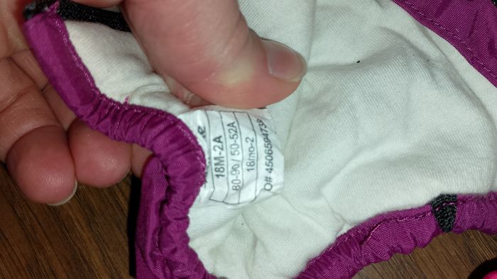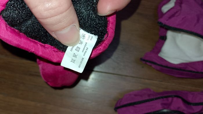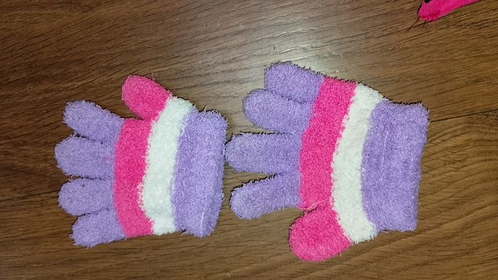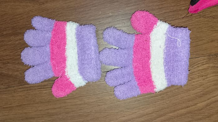 Gant enfant, bébé Gant violet Oxylane 18 mois - 2 ans gant long avec fermeture éclair pour un enfilage rapide (2 doigts) pouce et le reste ensemble, a scratch au dos de la main et élastique sur le bord du bras Novadry, Wed'ze 18€ Gant rose 2 doigts 122/128 6-8ans Avec bande noire "auto agrippante" Intérieur chaud 18€ Petit gant multicolore extensible Rose violet blanc Pour bébé et jusque 2-3 ans environ selon la morphologie de l'enfant 8€