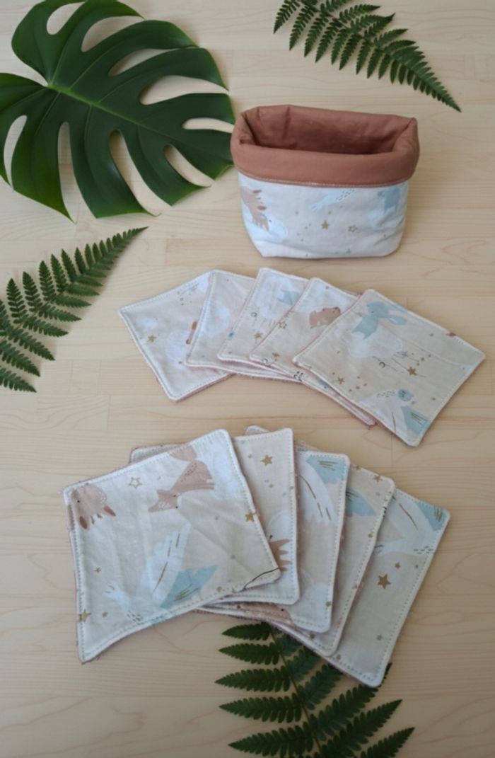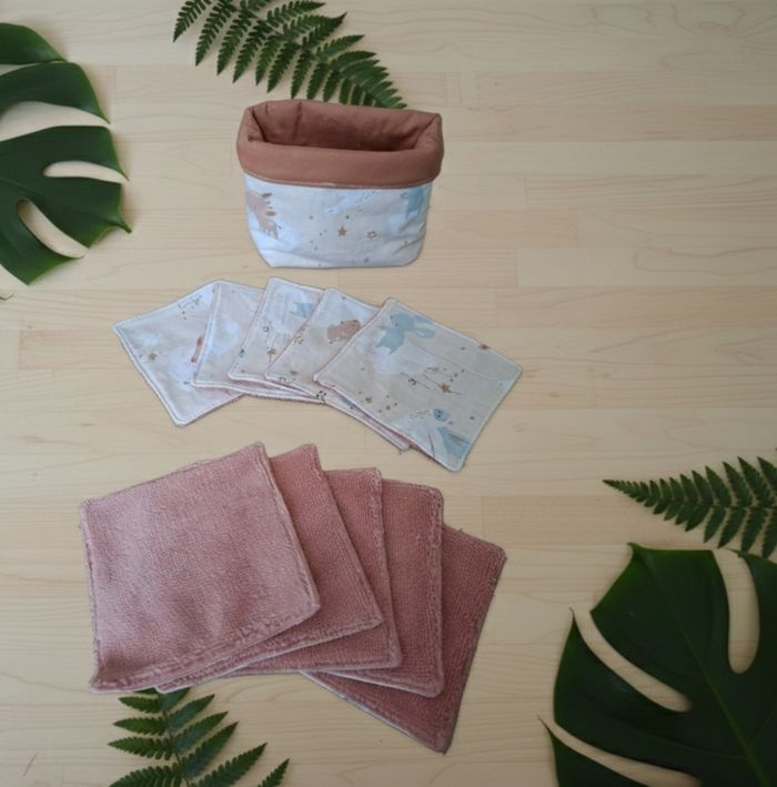 Magnifique ensemble d'accessoires pour bébé, parfait pour un cadeau de naissance ou pour compléter le trousseau de votre enfant. Un style naturel et poétique avec ses motifs biche, lapin et oiseau dans les tons beige, terracotta et bleu pastel. Ce lot comprend 5 éléments : * ​1 Bavoir : Double face avec une face éponge rose très absorbante et une face en coton imprimé. Fermeture par pression. * ​10 Lingettes lavables : Carrées, idéales pour la toilette de bébé ou le débarbouillage. Une face coton à motifs et une face éponge douce. * ​1 Panier de rangement: Assorti, parfait pour stocker les lingettes ou les produits de soin sur la table à langer. * ​1 Balle de préhension (Balle Montessori) : Texturée pour stimuler l'éveil sensoriel et la motricité fine de bébé. * ​1 Anneau de dentition "Oreilles de lapin" : En bois naturel et tissu, facile à attraper pour soulager les gencives. ​Détails de l'article : ​État : Neuf ​Matières : Coton et éponge (douceur garantie) ​Couleurs : Beige, vieux rose, terracotta, bleu ciel ​Style : Bohème / Nature / Montessori ​Envoi rapide et soigné 📦 N'hésitez pas à regarder mes autres annonces pour grouper vos achats et réduire les frais de port !