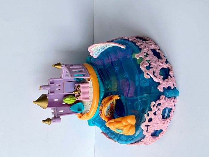 Ce jeu Polly Pocket de 1996 représente le château et l'océan avec la vie sous marine. La base du Polly Pocket s'ouvre pour montrer la vie sous marine. Vendu sans personnages et accessoires