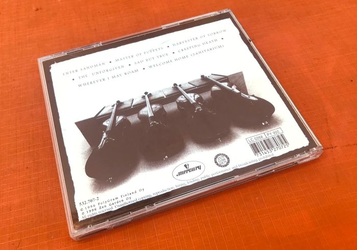 CD Apocalyptica Plays Metallica by Four Cellos (1996) Mercury 731453 270725 Enter Sandman 3:41 Master Of Puppets 7:17 Harvester Of Sorrow 6:15 The Unforgiven 5:23 Sad But True 4:48 Creeping Death 5:08 Wherever I May Roam 6:09 Welcome Home (Sanitarium) 5:50