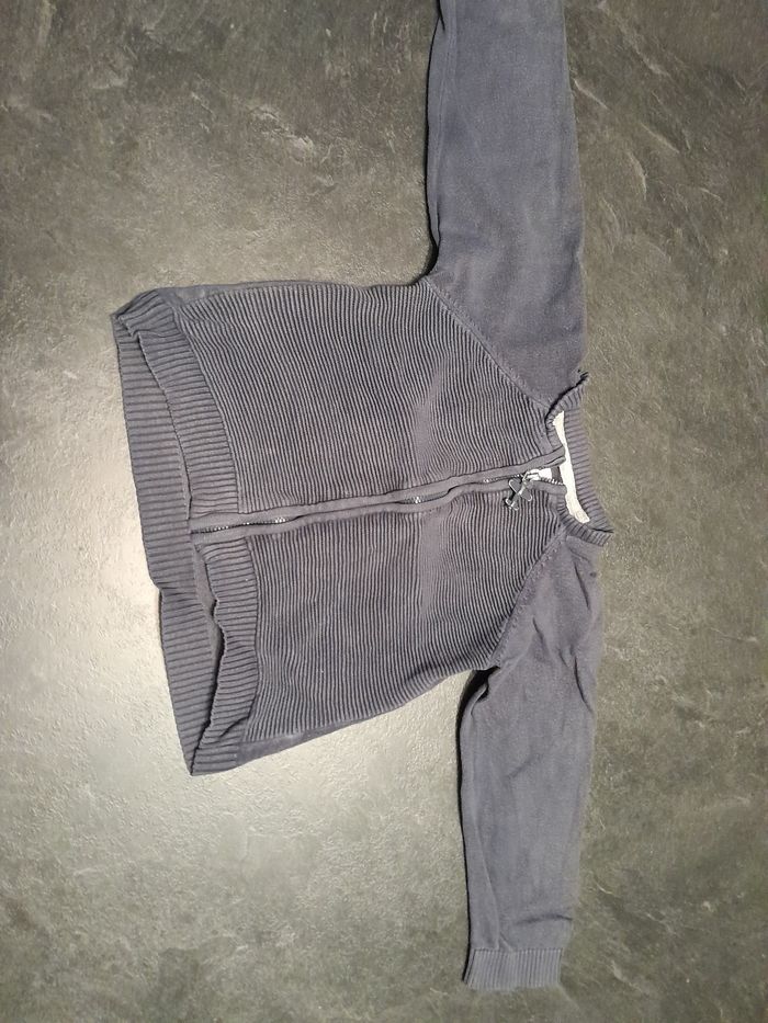Gilet bleu marine, avec avion sur la fermeture.