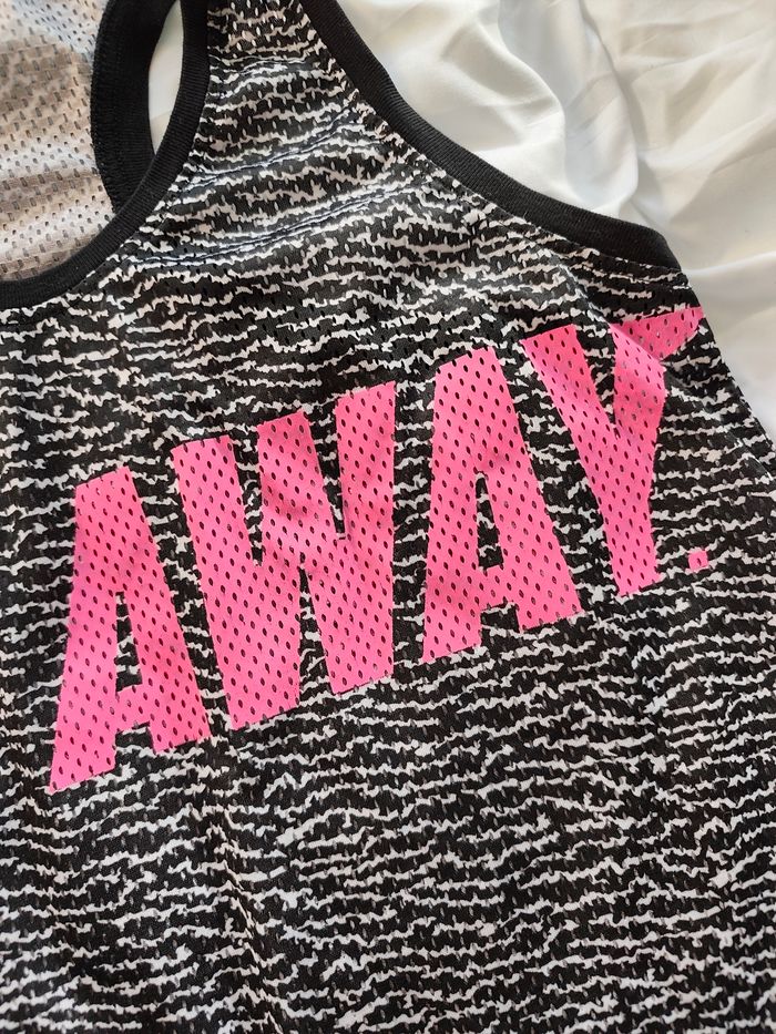 Haut de sport type running de la marque Décimas. Super confortable avec son tissu respirant (petits trous) et son dos nageur. L'imprimé rose fluo ressort super bien ! ✨ État : Très bon état 📏 Taille : M (38) 🌿 Matière : 100% Polyester 💸 Réductions sur les lots activées ! N'hésite pas à jeter un œil au reste de mon dressing en 38