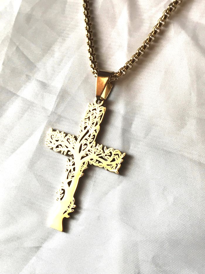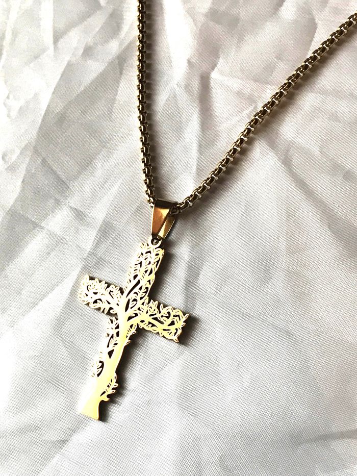 Collier Pendentif Croix Style Arbre Vie Branches Bijou Doré Fantaisie Hommes Femmes - photo numéro 1