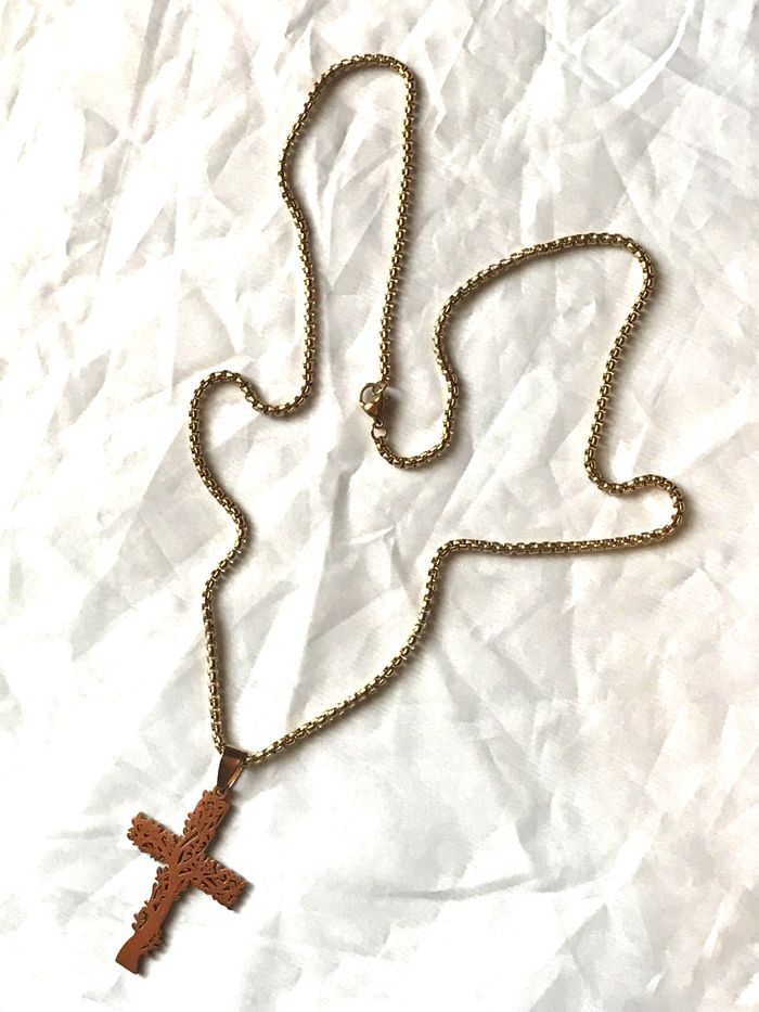 Collier Pendentif Croix Style Arbre Vie Branches Bijou Doré Fantaisie Hommes Femmes - photo numéro 4