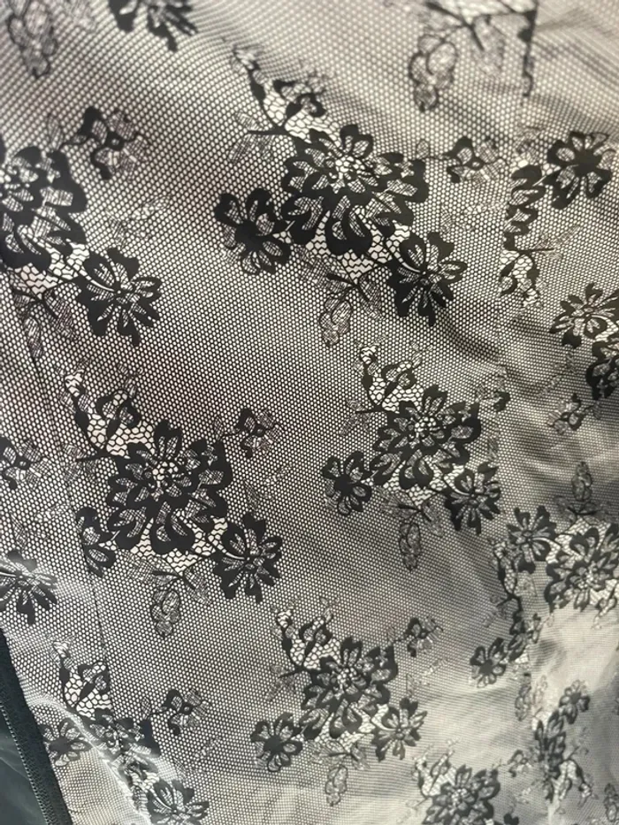 Manteau parka noir imperméable Avec un magnifique col à fourrure Poches avant Élastique sur les poignets pour couper l’entrée du froid La doublure à de jolis motifs fleurs Pour les frileuses qui ne veulent pas lésiner sur la qualité et la féminité