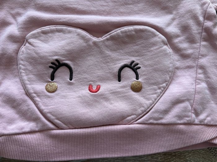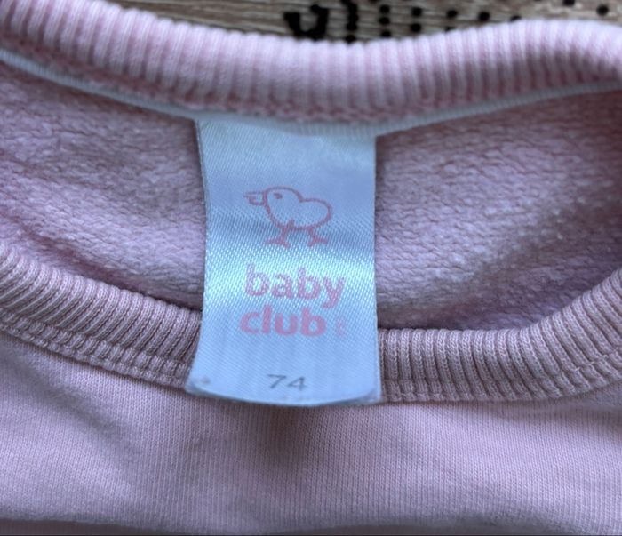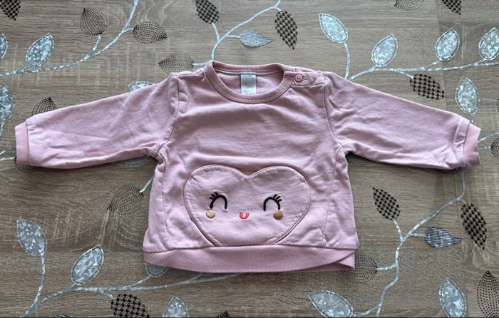 Sweat bébé rose tout doux avec motif cœur brodé. Pression à l’épaule, confortable et pratique. Très bon état, idéal au quotidien. Marque : baby club Taille : 74cm