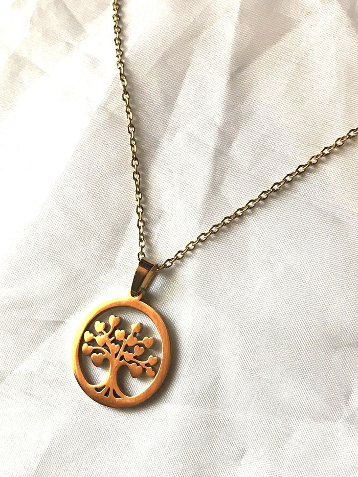 Collier Pendentif Arbre Vie Cercle Cœurs Bijou Doré Fantaisie Hommes Femmes - photo numéro 1