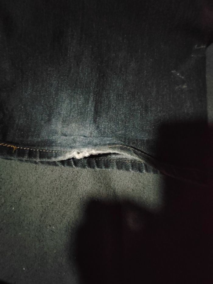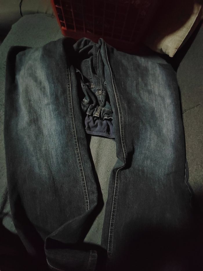 Jeans grossesse taille reglable Effet délavé Usures bas du pantalon arrière voir photos Taille 48