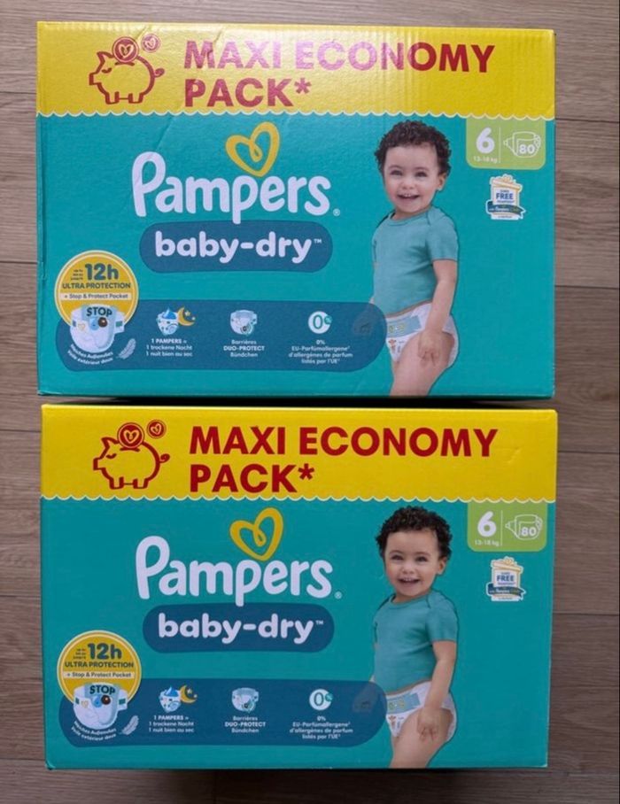 160 couches Pampers baby dry taille 6 Pour bébé de 13 à 18 kg