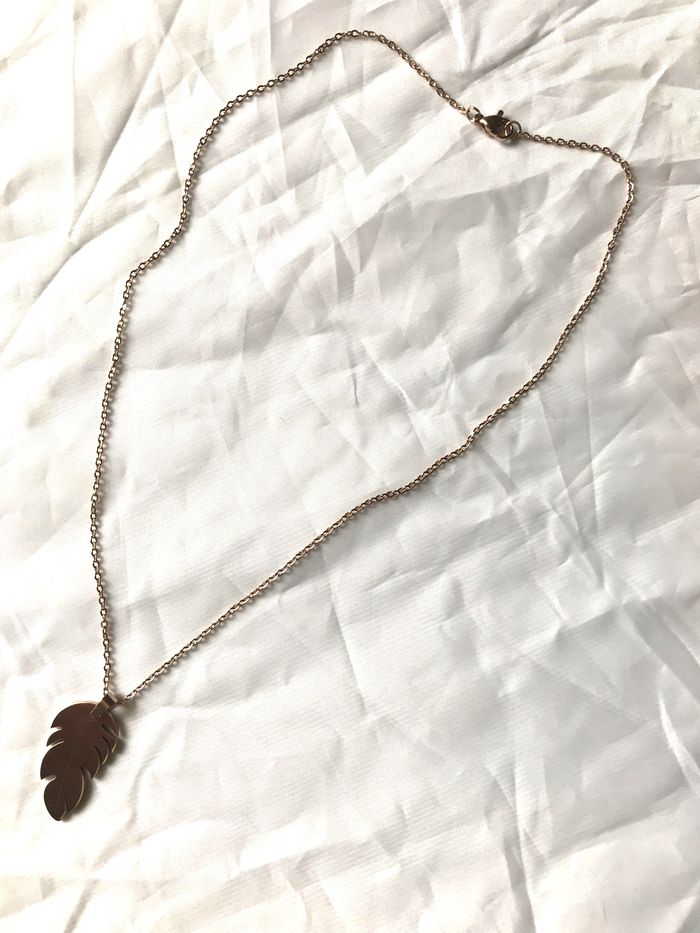 Collier Pendentif Plume Rigide Souple Bijou Or Rose Fantaisie Hommes Femmes - photo numéro 4